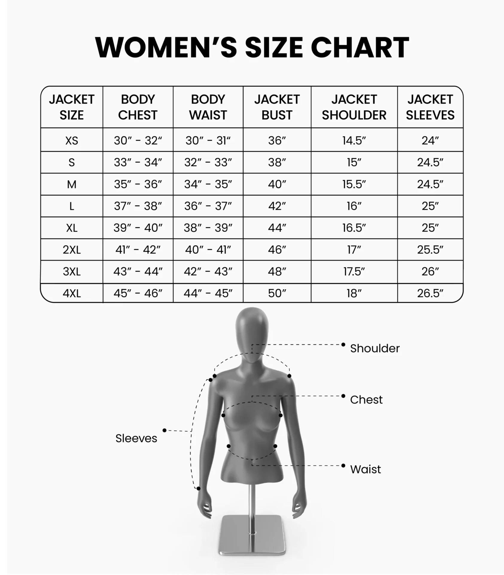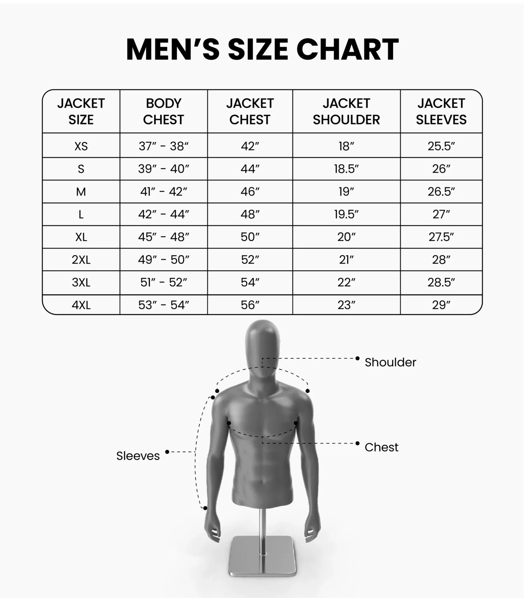 - True to size construction. Each jacket is cut and built to your selected size.