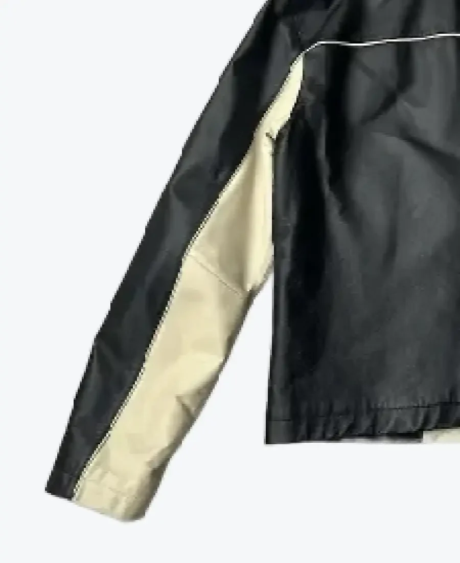 The architecture of this jacket is defined by its clean waist-length silhouette and an iconic “retro-moto” aesthetic. It features a sharp short neck band-style collar with a secure snap-button closure, providing a structured and powerful frame to the neckline that exudes a classic professional vibe with a contemporary urban twist. The front is anchored by a high-performance central zipper closure, maintaining a precision tailored-fit profile that emphasizes the unique star-like “V-taper” beige panelling on the chest and sleeves. To ensure a sleek and uninterrupted profile at the extremities, the full-length sleeves are finished with clean open hem cuffs, while the expert anatomical construction and streamlined straight hemline create a sophisticated architectural volume. Designed for the individual who demands maximum artistic flair within a polished frame, this Rare Jackets essential features a strategic pocket configuration—including two discreet slanted side-entry welt pockets and hidden inner pockets—offering secure storage while reinforcing the jacket’s sleek, high-impact silhouette.