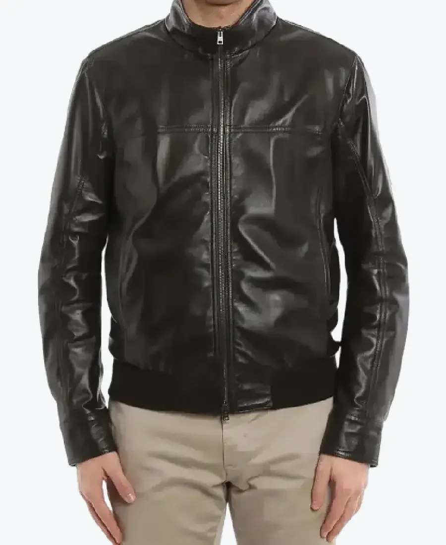 Charles Mens Black Bomber Leather Jacket