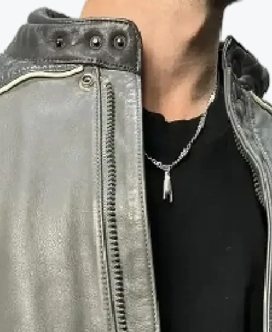 2 reviews for 90s Vintage Grunge Distressed Grey Biker Leather Jacket