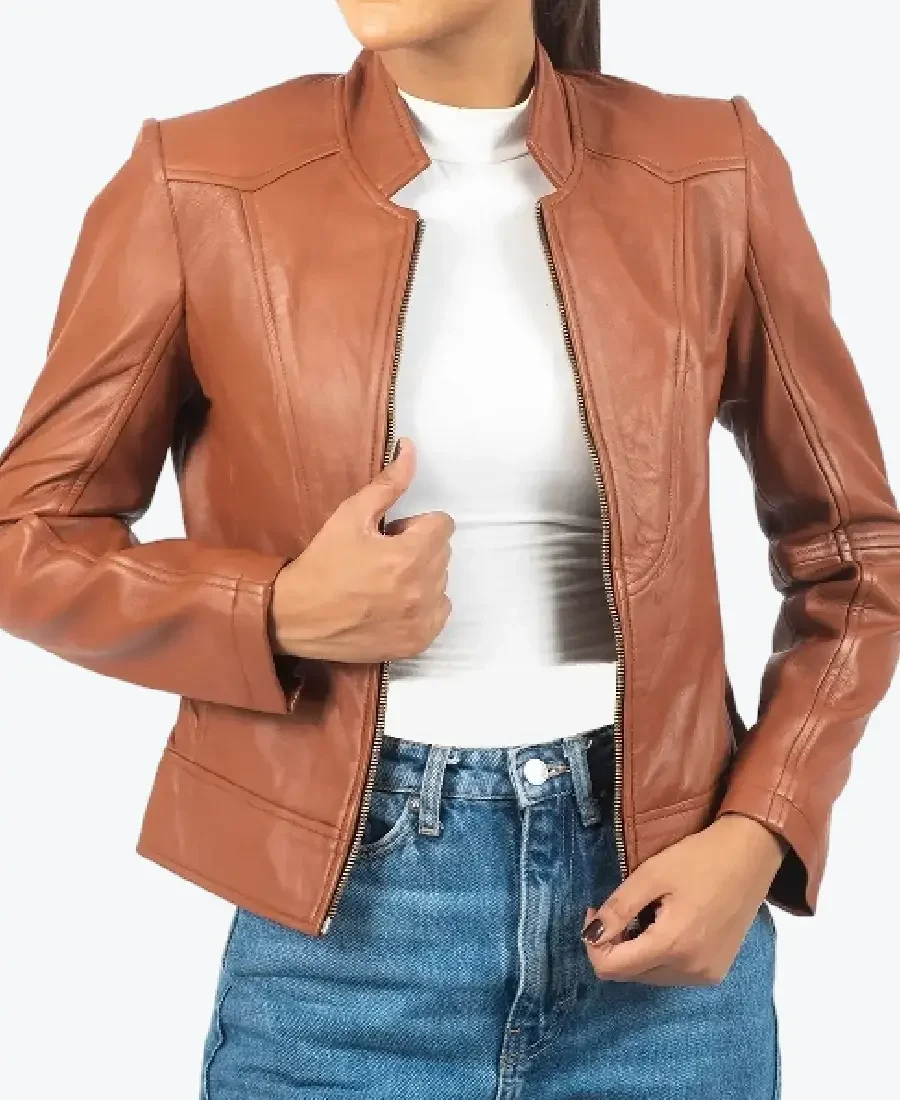 Shop The Rare Jackets Aileen Women’s Brown Biker Leather Jacket