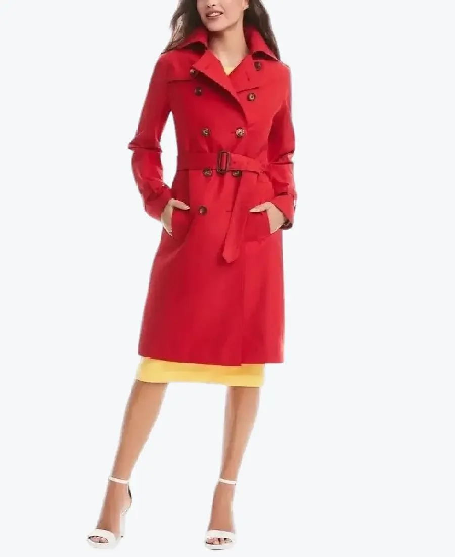 The design features a traditional lapel style collar, offering a refined and polished look that defines the authentic duster profile. A secure dual closure system featuring classic buttons and an adjustable waist belt ensures a customized, flattering fit while providing maximum protection against the elements. This coat is functional and streamlined, featuring two side pockets for convenient storage and hand warmth. Full-length sleeves are finished with open hem cuffs, providing a clean and fluid finish at the wrists that enhances the coat’s elegant drape. The vibrant red color provides a powerful foundation that adds a touch of sophistication and confidence to any ensemble. This garment serves as a distinguished centerpiece for your outerwear collection and stands as a piece of premium craftsmanship.