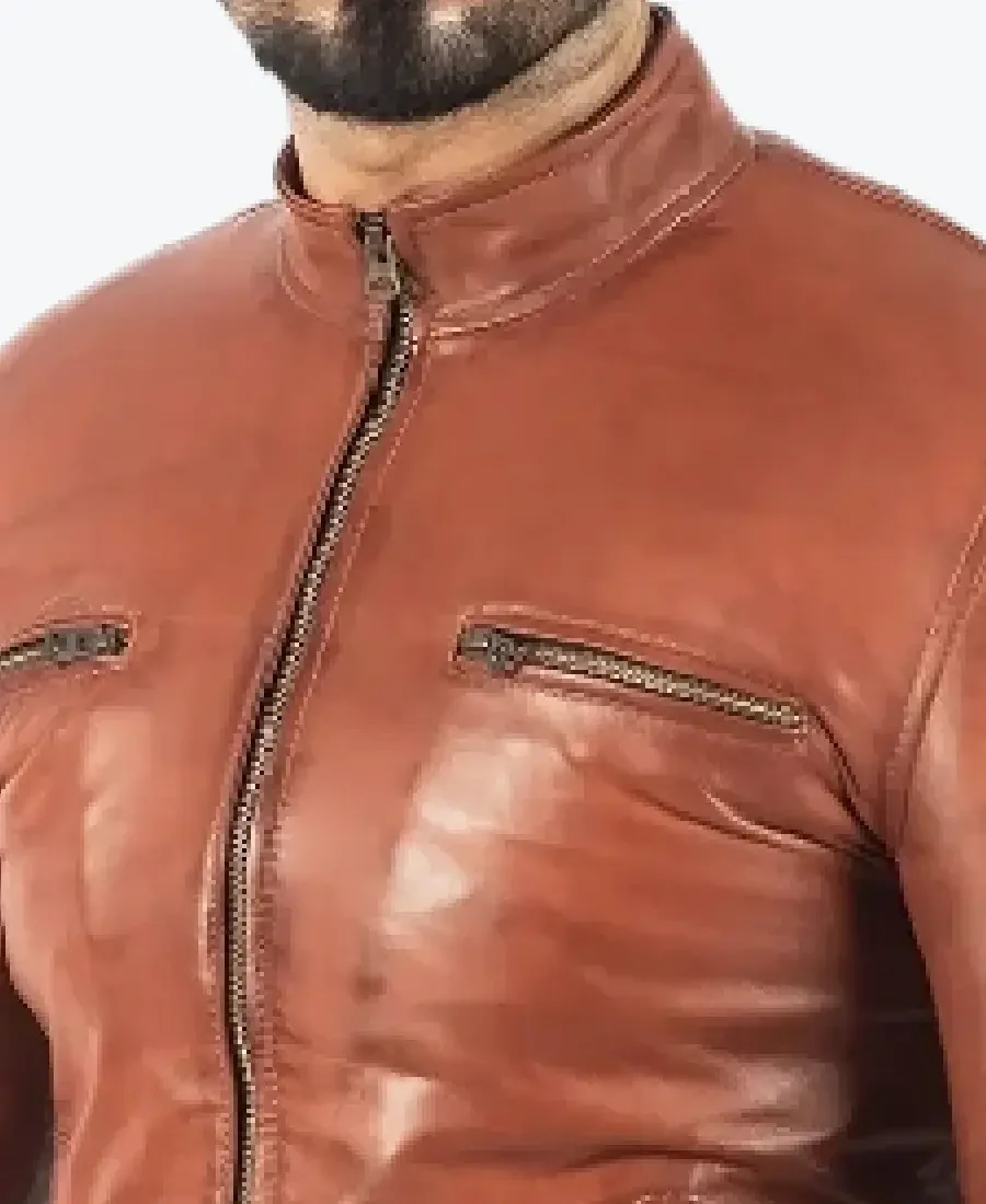 The Andrew Men’s Vintage Brown Leather Jacket by Rare Jackets is a masterclass in rugged architectural design and precision luxury meticulously handcrafted from premium cowhide leather or high grade faux leather. Drenched in a commanding and warm “cognac-amber” brown, this piece leverages a robust high grade grain and natural wind resistant properties to provide a formidable protective shell for the modern landscape. The leather is selected for its industrial grade durability and a sophisticated hand burnished “vintage-patina” finish, ensuring the jacket maintains a sharp authoritative frame while projecting a raw, high fashion energy. Inside, the garment is fully integrated with a silky viscose lining, providing a breathable and friction free experience for maximum all day comfort.