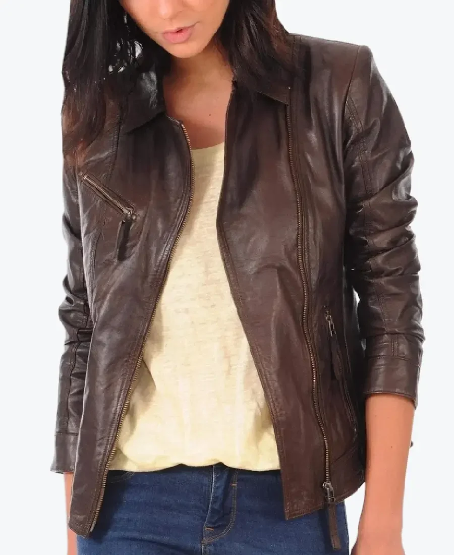 3 reviews for Ava Dark Brown Rider Biker Leather Jacket