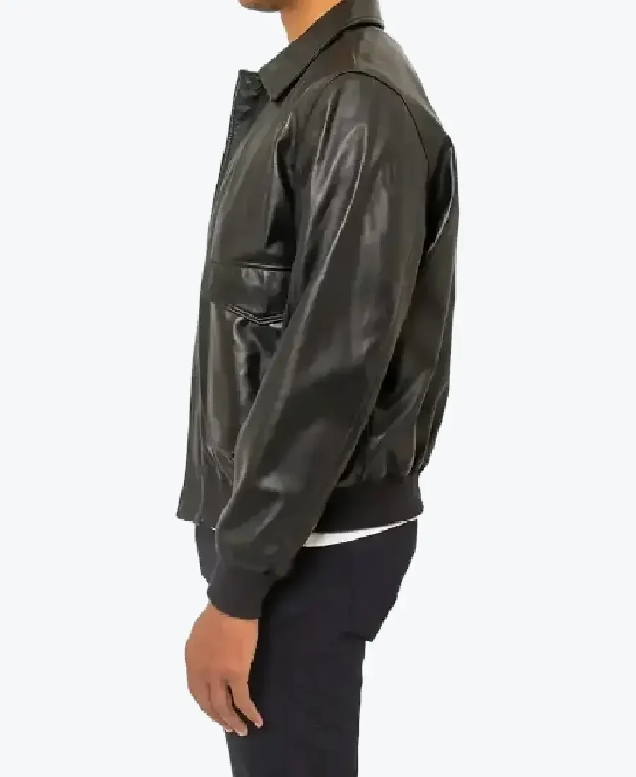 The architecture of this jacket is defined by its clean waist-length silhouette and an iconic “WWII-flight” aesthetic. It features a sharp turn-down shirt-style leather collar providing a structured and powerful frame to the neckline that exudes a classic professional vibe with a contemporary urban twist. The front is anchored by a high-performance central zipper closure, maintaining a precision tailored-fit profile that emphasizes the clean, military-spec construction and expert ergonomic seam detailing. To ensure superior heat retention and a custom look at the extremities, the full-length sleeves and wide-waist hemline are finished with high-impact obsidian rib-knitted cuffs and a matching waistband, while the expert anatomical construction creates a sophisticated architectural volume. Designed for the individual who demands maximum organized utility within a polished frame, this Rare Jackets essential features a strategic four-pocket configuration—including two oversized external patch pockets with secure flap closures and two hidden inner pockets—offering secure storage while reinforcing the jacket’s sleek, high-impact silhouette.
