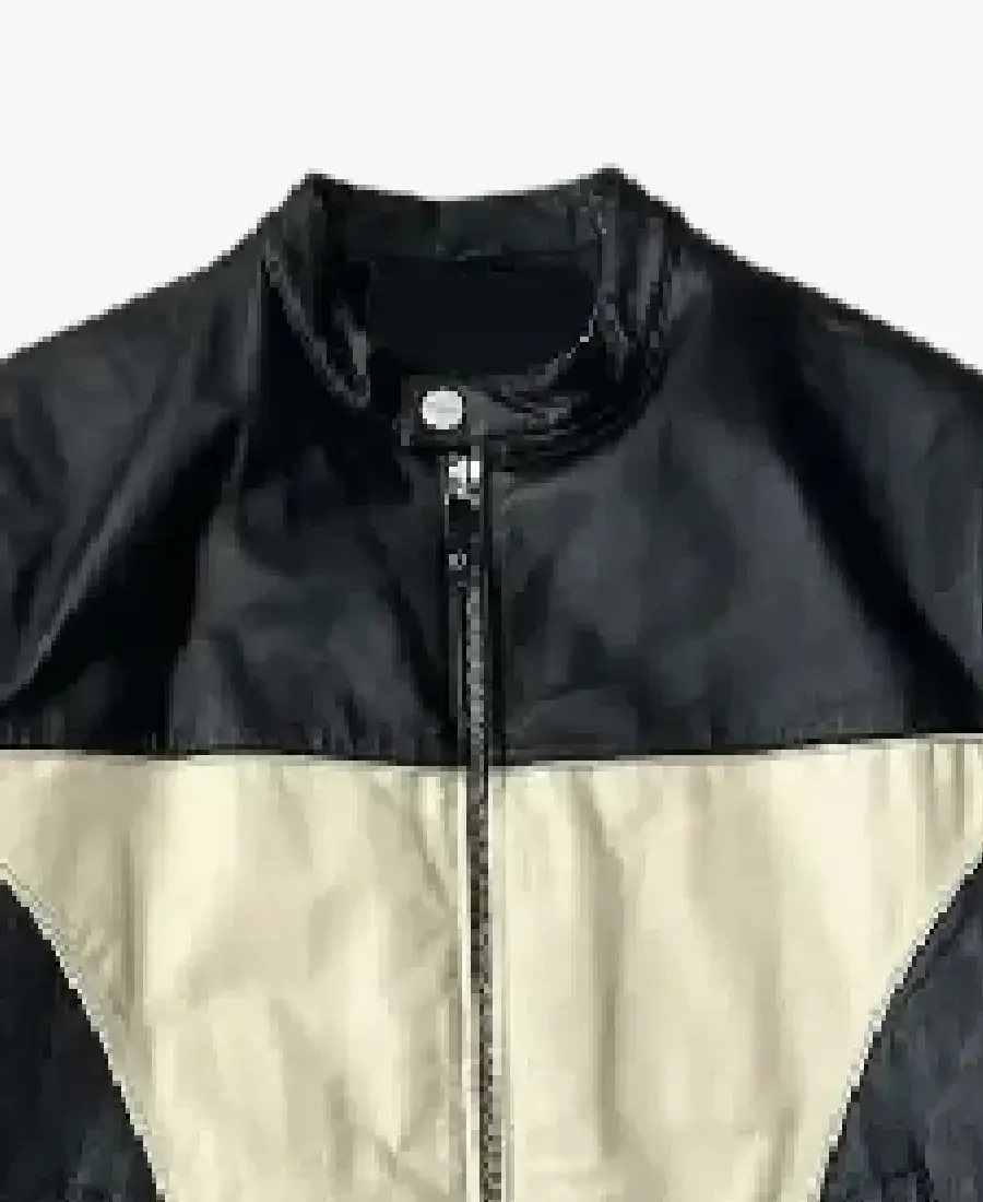 The architecture of this jacket is defined by its clean waist-length silhouette and an iconic “retro-moto” aesthetic. It features a sharp short neck band-style collar with a secure snap-button closure, providing a structured and powerful frame to the neckline that exudes a classic professional vibe with a contemporary urban twist. The front is anchored by a high-performance central zipper closure, maintaining a precision tailored-fit profile that emphasizes the unique star-like “V-taper” beige panelling on the chest and sleeves. To ensure a sleek and uninterrupted profile at the extremities, the full-length sleeves are finished with clean open hem cuffs, while the expert anatomical construction and streamlined straight hemline create a sophisticated architectural volume. Designed for the individual who demands maximum artistic flair within a polished frame, this Rare Jackets essential features a strategic pocket configuration—including two discreet slanted side-entry welt pockets and hidden inner pockets—offering secure storage while reinforcing the jacket’s sleek, high-impact silhouette.