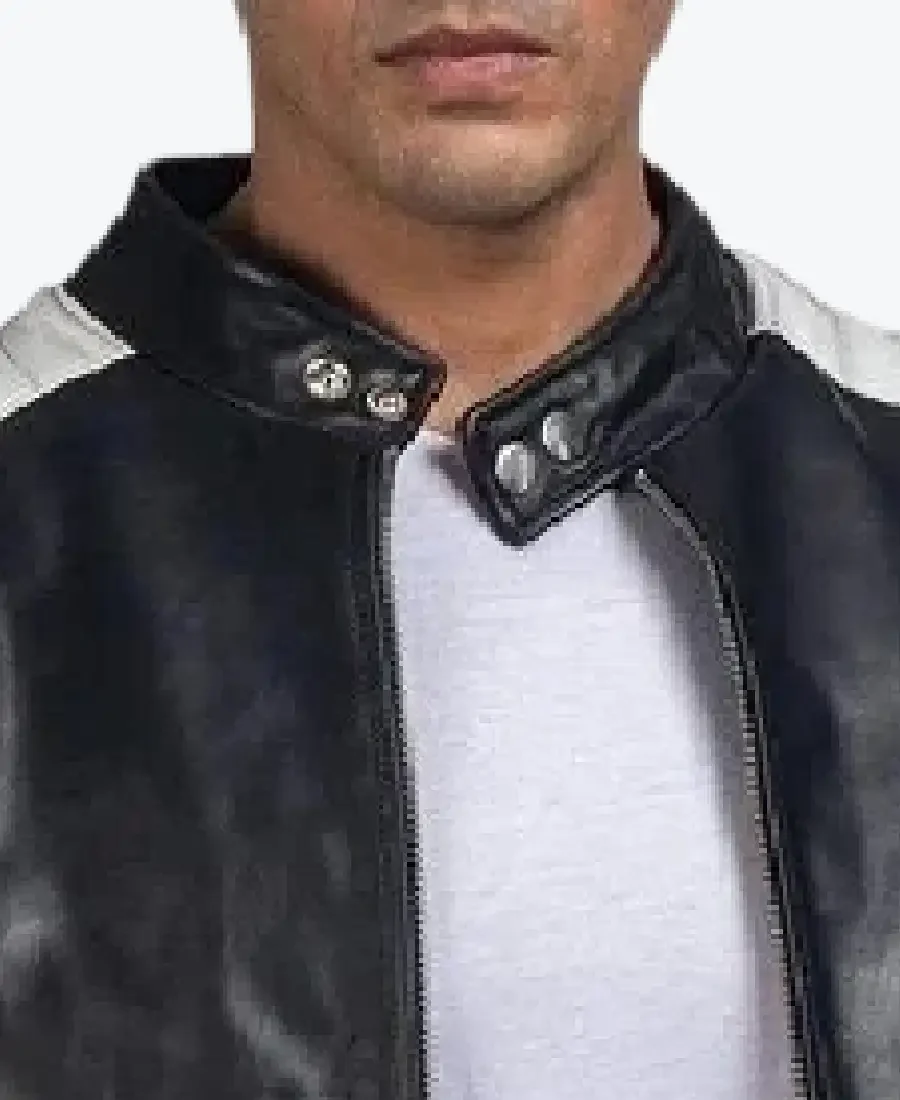 Brad Black And White Leather Biker Jacket