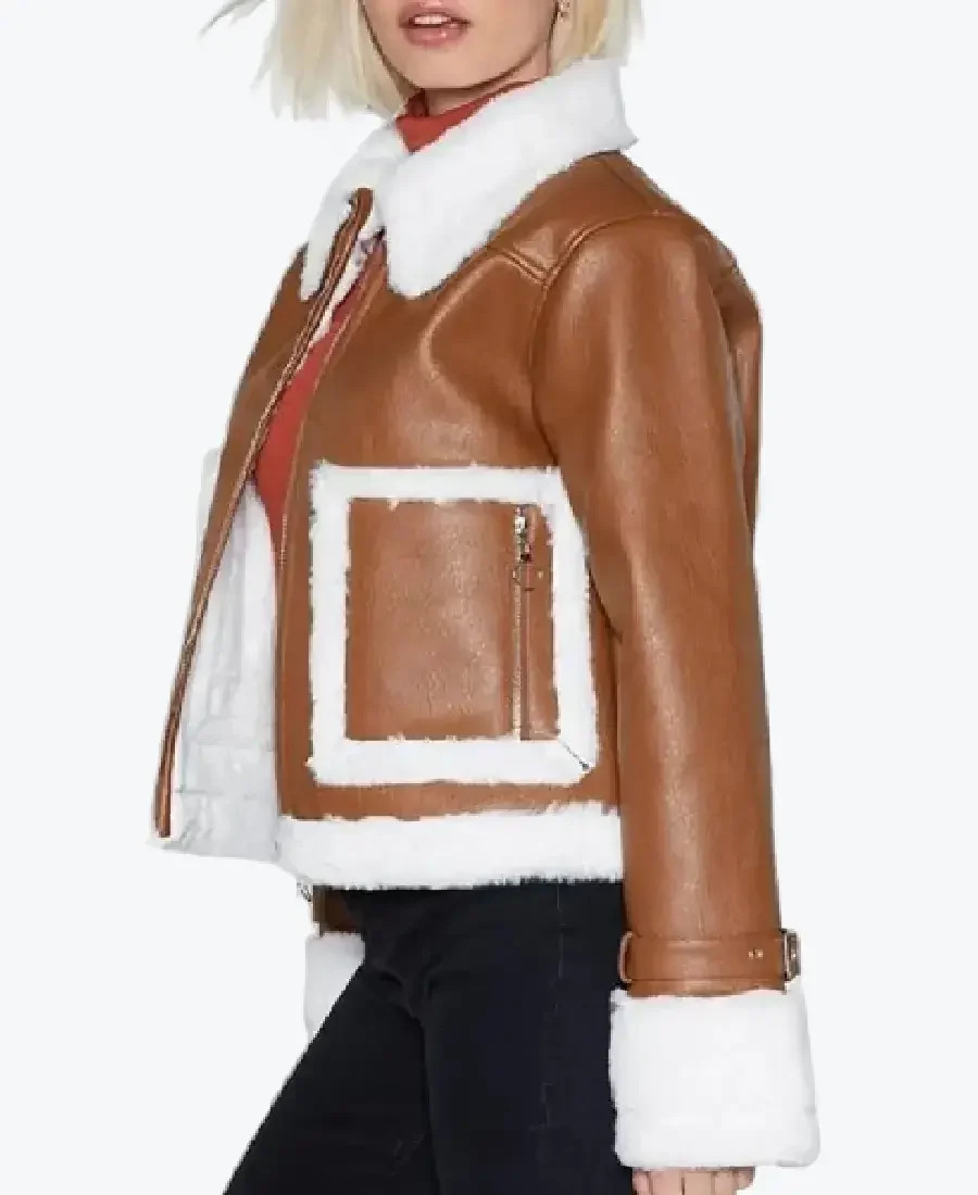 The Women’s Brown Cropped Aviator Leather Jacket by Rare Jackets is a masterclass in high-contrast urban design and precision luxury meticulously handcrafted from premium cowhide leather or high-grade faux leather. Drenched in a commanding and rich cognac brown this piece leverages a robust high-grade grain and natural wind-resistant properties to provide a formidable protective shell. The hide is selected for its industrial-grade durability and a sophisticated semi-gloss finish ensuring the jacket maintains a sharp authoritative frame while projecting a raw contemporary energy. Inside the garment is fully integrated with a plush high-density snow white fur lining providing unparalleled warmth and a high-comfort experience for freezing temperatures.