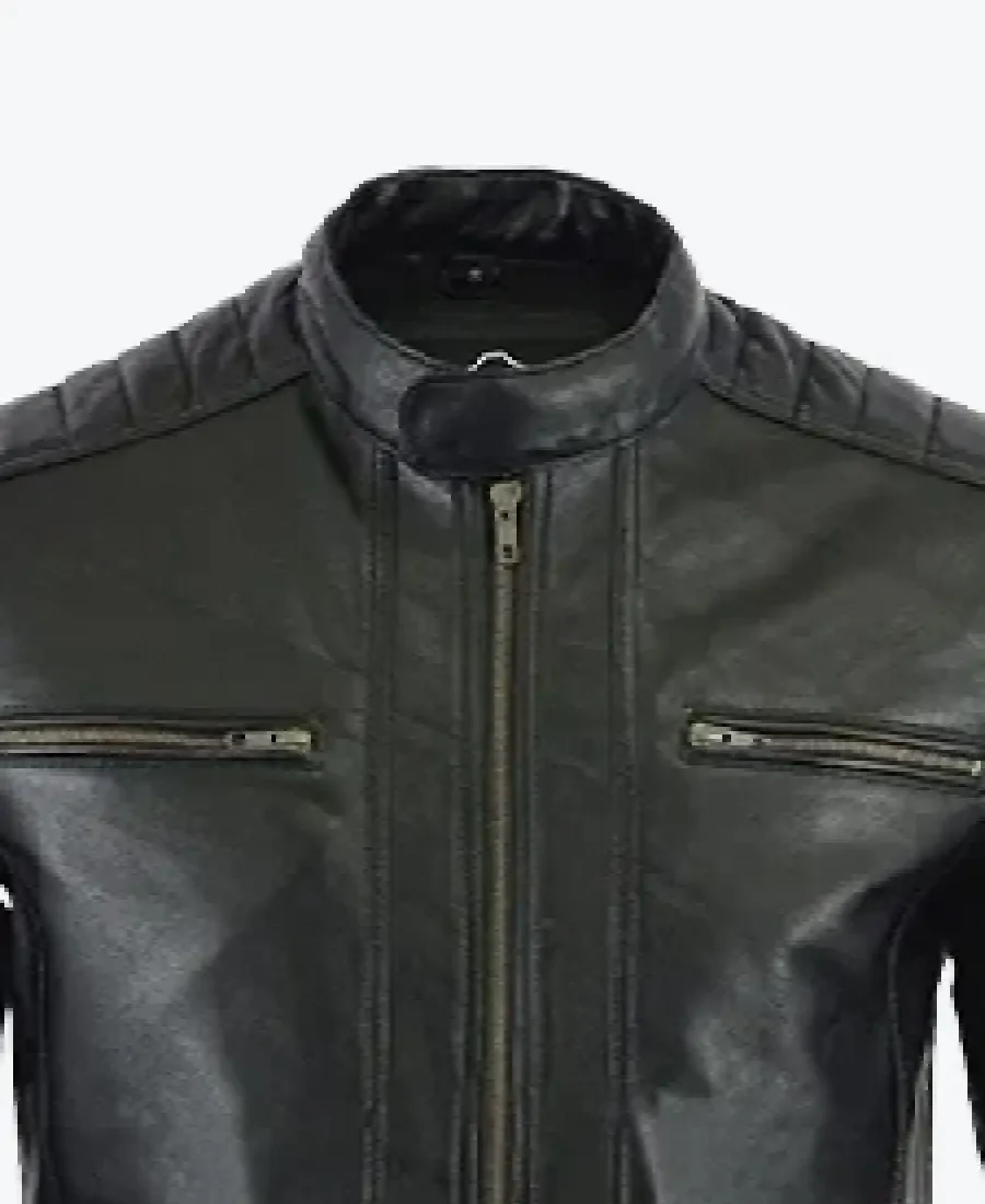 The Cafe Racer Black Leather Jacket by Rare Jackets is a masterclass in aerodynamic urban luxury and precision-tailored engineering, meticulously handcrafted from premium cowhide leather (also available in high-grade faux leather). Drenched in a commanding obsidian black, this piece leverages a robust, high-grade grain and natural wind-resistant properties to provide a formidable protective shell. The hide is selected for its industrial-grade durability and a sophisticated, buttery-smooth finish, ensuring the jacket maintains a sharp, authoritative frame while projecting a raw, contemporary energy. Inside, the garment is fully lined with a silky viscose lining, providing a breathable and friction-free experience for maximum all-day comfort.
