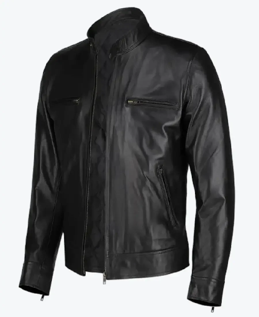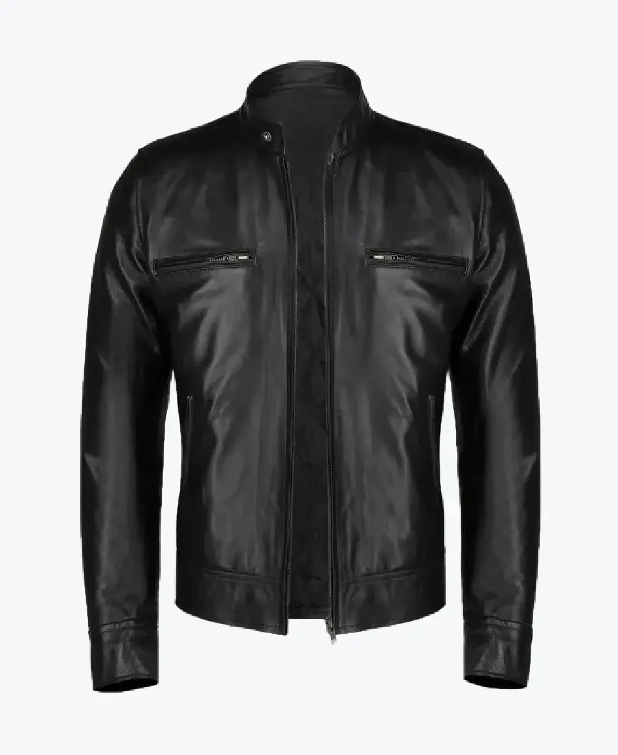 The architecture of this jacket is defined by its ultra-sleek aerodynamic silhouette and an iconic metropolitan “speedway-elite” aesthetic. It features a sharp erect snap-tab collar providing a structured and powerful frame to the neckline that exudes a classic professional vibe with a contemporary urban twist. The front is anchored by a high-performance central silver zipper closure, maintaining a precision tailored fit profile that emphasizes the unique seamless-chest construction and expert anatomical seam detailing. To ensure a custom look and tapered profile at the extremities, the full-length sleeves are finished with high-impact silver zipper cuffs, while the reinforced horizontal panelling at the hem creates a sophisticated architectural volume. Designed for the individual who demands maximum organized utility within a polished frame, this Rare Jackets essential features a strategic five-pocket configuration including two technical horizontal zipper chest pockets, two discreet vertical side entry welt pockets, and a hidden inner pocket—offering secure storage while reinforcing the jacket’s sleek, high-impact silhouette.