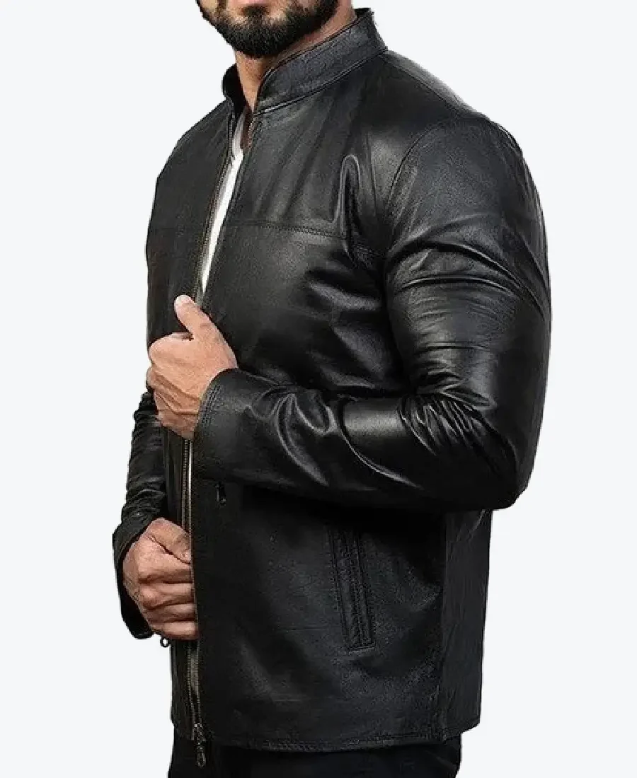 The Charcoal Black Slim Fit Leather Jacket by Rare Jackets is a masterclass in aerodynamic minimalist design and precision luxury meticulously handcrafted from premium cowhide leather or high-grade faux leather. Drenched in a commanding and deep charcoal-infused obsidian black, this piece leverages a robust high grade grain and natural wind-resistant properties to provide a formidable protective shell for the modern landscape. The leather is selected for its industrial grade durability and a sophisticated semi-matte “carbon buffed” finish, ensuring the jacket maintains a sharp authoritative frame while projecting a raw, high-fashion energy. Inside, the garment is fully integrated with a silky viscose lining, providing a breathable and friction-free experience for maximum all-day comfort.