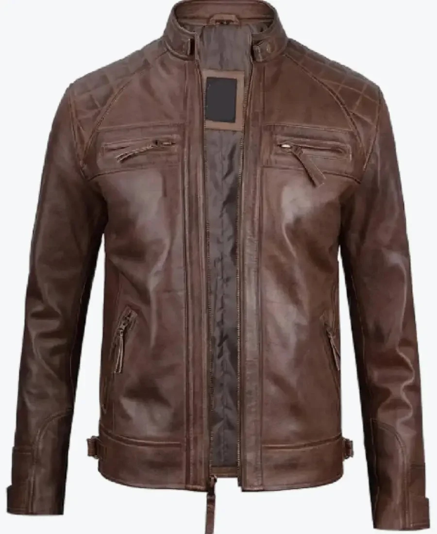 Chocolate Brown Cafe Mens Leather Motorcycle Jacket