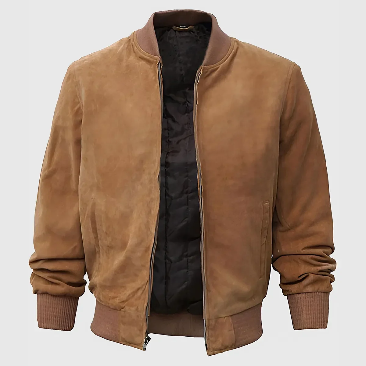 The Chris Men’s Brown Bomber Suede Jacket by Rare Jackets is a masterclass in high-definition urban architecture and precision luxury meticulously handcrafted from premium authentic suede leather. Drenched in a commanding and timeless roasted camel tan, this piece leverages a robust high-grade nap and natural wind-resistant properties to provide a formidable protective shell for the modern landscape. The suede is selected for its industrial-grade durability and a sophisticated velvety matte finish, ensuring the jacket maintains a sharp authoritative frame while projecting a raw, high-fashion energy. Inside, the garment is fully integrated with a silky viscose lining, providing a breathable and friction-free experience for maximum all-day comfort.
