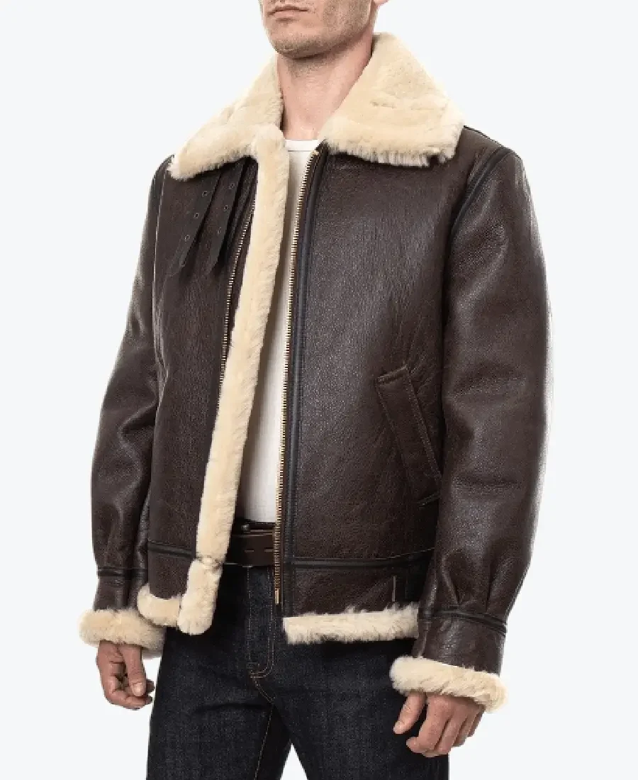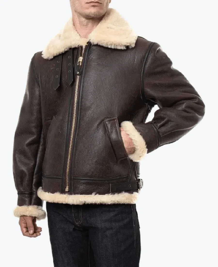 The Rare Jackets Classic Dark Brown Sheepskin Shearling Bomber Jacket provides a rugged and luxurious silhouette designed for a timeless, heritage-inspired aesthetic. This garment features premium sheepskin leather to ensure a substantial, windproof exterior and exceptional durability for your winter wardrobe. An internal fur lining facilitates maximum warmth and a plush feel, making it an ideal choice for the coldest temperatures.