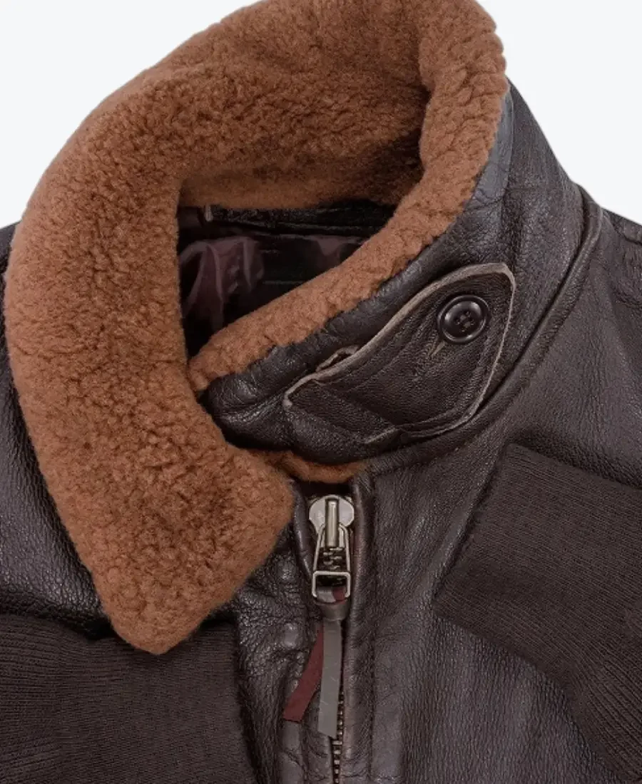 The architecture of this jacket is defined by its structured, heavy duty silhouette and an iconic naval aviation aesthetic. It features a sharp, oversized fur style collar in a contrasting honey brown, providing a powerful frame to the neckline and superior thermal protection that exudes a classic professional vibe with a contemporary urban twist. The front is anchored by a high performance central zipper closure, maintaining a precision tailored fit profile that emphasizes the expert anatomical seam construction and traditional flight jacket hallmarks. To ensure a sleek and uninterrupted profile at the extremities, the full length sleeves and hem are finished with reinforced tonal ribbed knit cuffs, while the tapered waist creates a sophisticated architectural volume. Designed for the individual who demands maximum organized utility within a polished frame, this Rare Jackets essential features a strategic pocket configuration including two large buttoned flap waist pockets and two hidden inner pockets offering secure storage while reinforcing the jacket’s sleek, high impact silhouette.