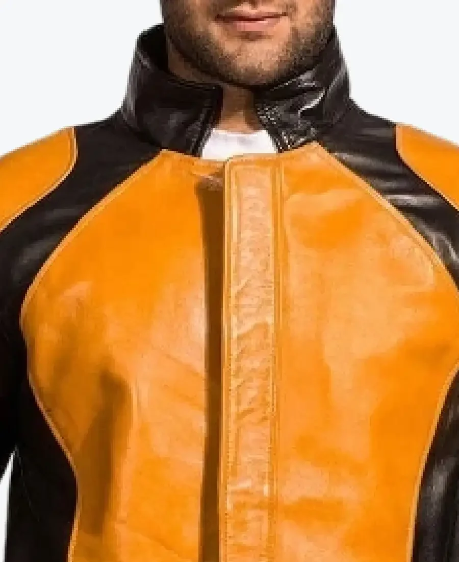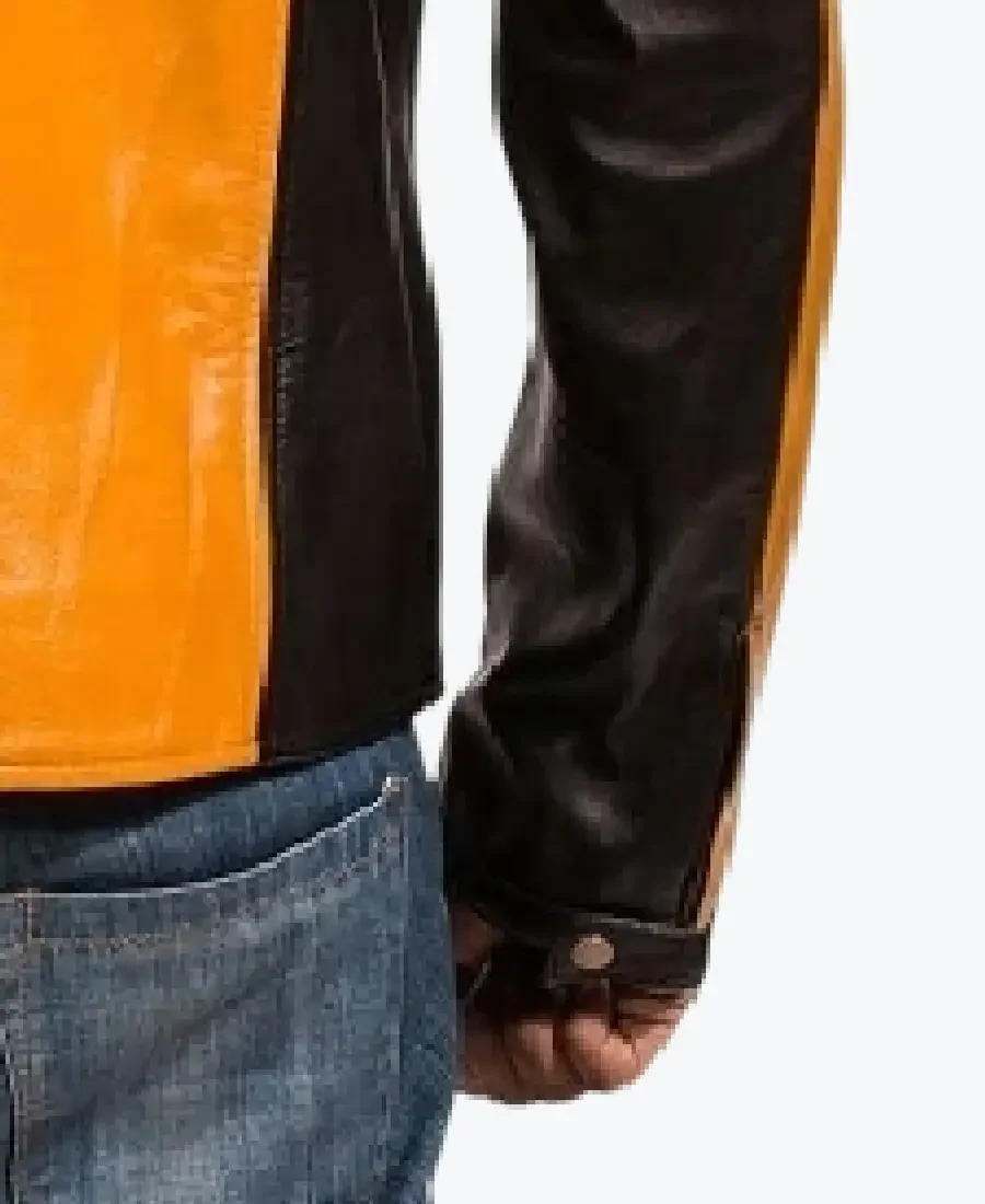 The Cole MacGrath Biker Leather Jacket by Rare Jackets is a masterclass in high-contrast dual-tone design and precision-tailored urban luxury, meticulously handcrafted from premium cowhide leather (also available in high-grade faux leather). Defined by its striking mustard orange and obsidian black color-block architecture, this piece leverages a robust grain and natural wind-resistant properties to provide a formidable protective shell. The hide is selected for its industrial-grade durability and a sophisticated, low-sheen finish, ensuring the jacket maintains a sharp, authoritative frame while projecting a raw, contemporary energy inspired by iconic gaming heritage. Inside, the garment is fully lined with a silky viscose lining, providing a breathable and friction-free experience for maximum all-day comfort.