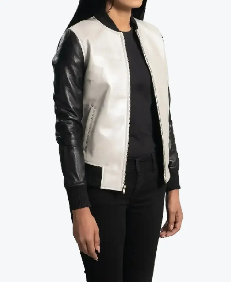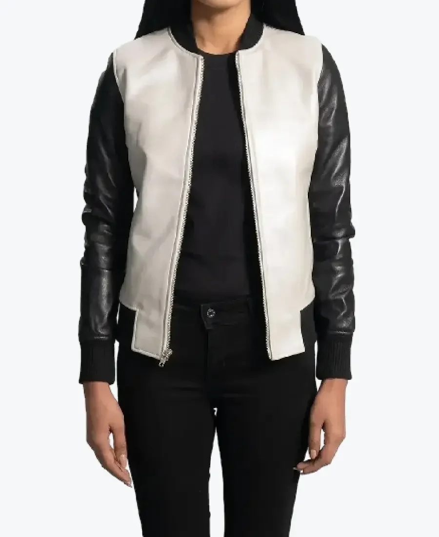 Cole White And Leather Bomber Jacket