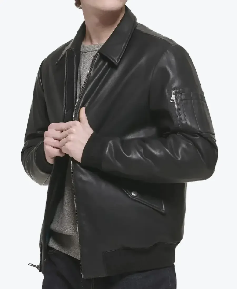 The architecture of this jacket is defined by its clean waist-length silhouette and an iconic “stealth-aviator” aesthetic. It features a sharp shirt-style leather collar providing a structured and powerful frame to the neckline that exudes a classic professional vibe with a contemporary urban twist. The front is anchored by a high-performance tonal zipper closure, maintaining a precision tailored-fit profile that emphasizes the unique angular flap pockets and expert ergonomic seam construction. To ensure superior heat retention and a custom look at the extremities, the full-length sleeves and wide-waist hemline are finished with high-impact obsidian rib-knitted cuffs and a matching waistband, while the technical utility zipper sleeve pocket creates a sophisticated architectural volume. Designed for the individual who demands maximum organized utility within a polished frame, this Rare Jackets essential features a strategic pocket configuration—including two oversized slanted external button-flap pockets, a technical utility sleeve pocket, and hidden inner pockets—offering secure storage while reinforcing the jacket’s sleek, high-impact silhouette.