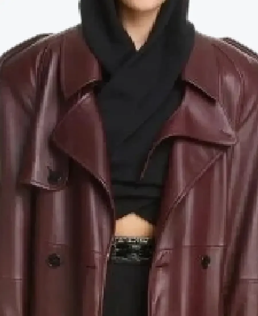 Delicate Kim Burgundy Leather Coat