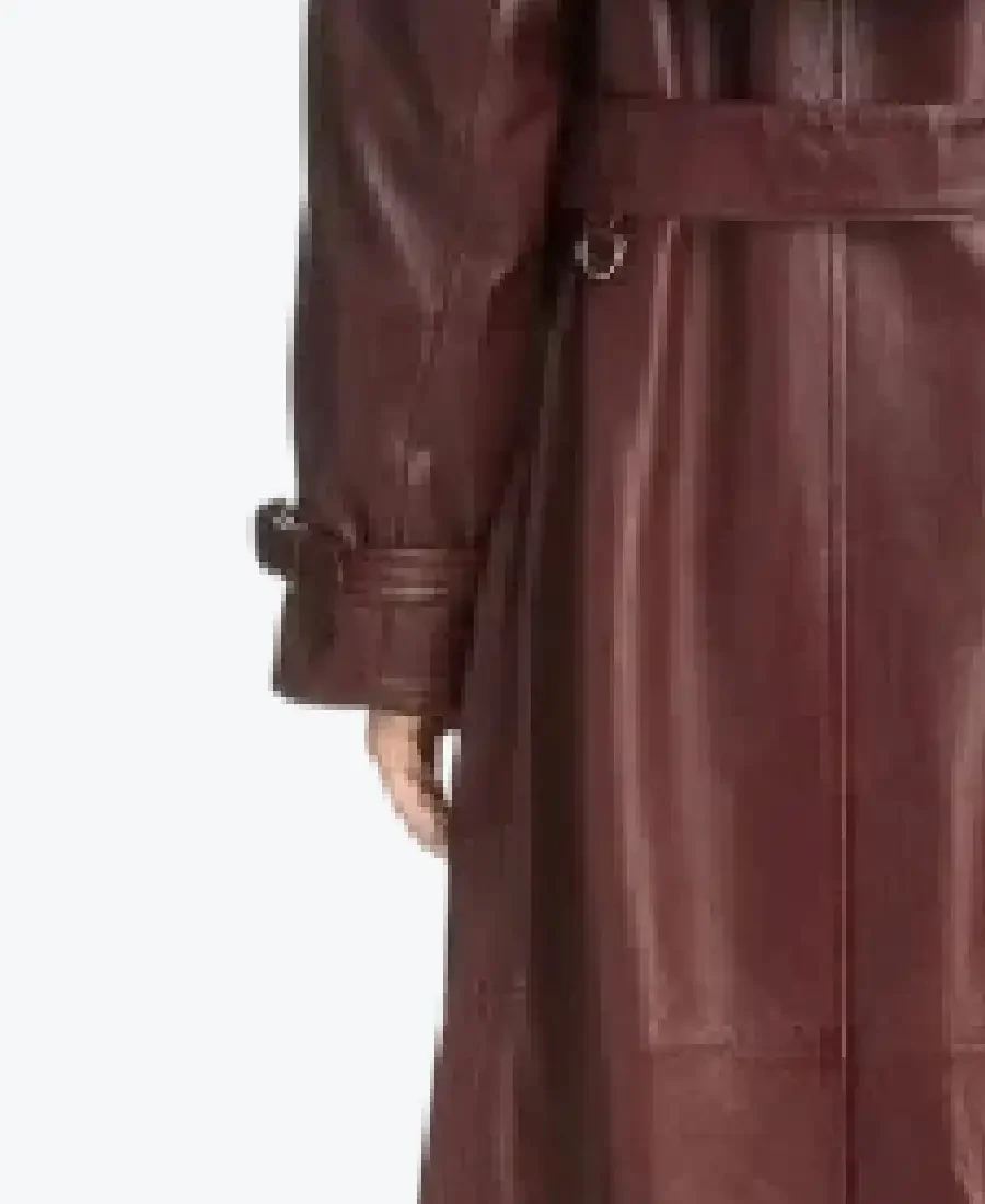 The architecture of this coat is defined by its clean, floor-sweeping lines and an iconic oversized trench aesthetic. It features a contemporary exaggerated lapel style collar and structured shoulder epaulets, lending a powerful and tailored frame to the silhouette that exudes a classic professional-meets-runway vibe. The front is anchored by a high-performance double-breasted button closure, maintaining a precision relaxed-fit profile that creates a dramatic, high-impact drape. To ensure a custom look at the extremities, the full-length sleeves are detailed with sophisticated belted cuffs and classic storm-flap detailing on the chest. Designed for the individual who demands maximum presence, this Rare Jackets essential features a strategic two vertical side welt pocket configuration, offering secure storage while reinforcing the coat’s sleek, high-impact silhouette.