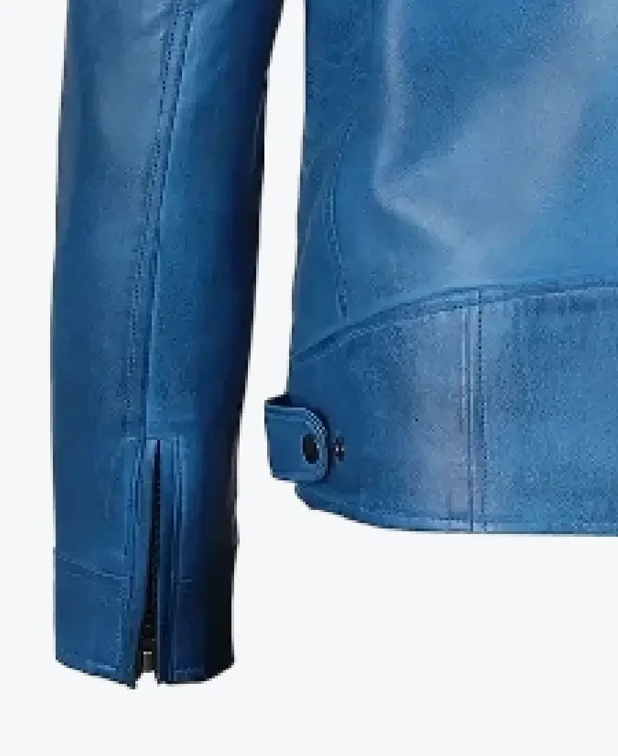 Dodge Blue Cafe Racer Leather Jacket