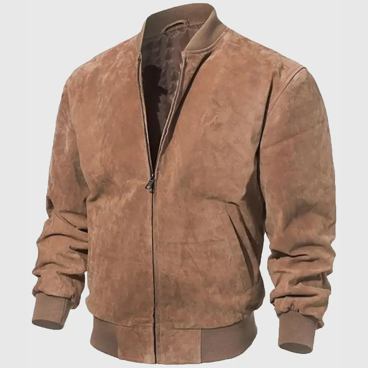 The Donald Men’s Brown MA-1 Bomber Suede Jacket by Rare Jackets is a masterclass in high-definition urban architecture and precision luxury meticulously handcrafted from premium authentic suede leather. Drenched in a commanding and warm roasted sand tobacco, this piece leverages a robust high-grade nap and natural wind-resistant properties to provide a formidable protective shell for the modern landscape. The suede is selected for its industrial-grade durability and a sophisticated velvet matte finish, ensuring the jacket maintains a sharp authoritative frame while projecting a raw, high-fashion energy. Inside, the garment is fully integrated with a silky viscose lining, providing a breathable and friction-free experience for maximum all-day comfort.
