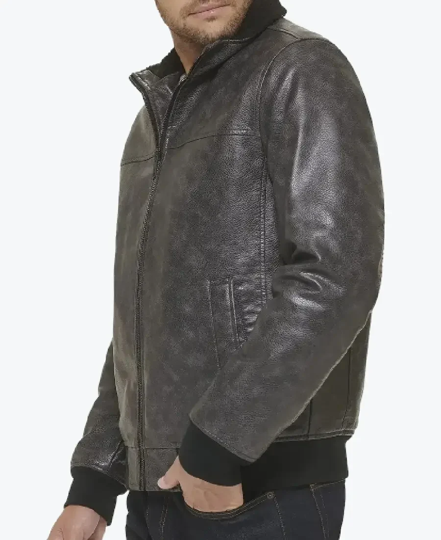 Donald Mens Distressed Grey Bomber Leather Jacket