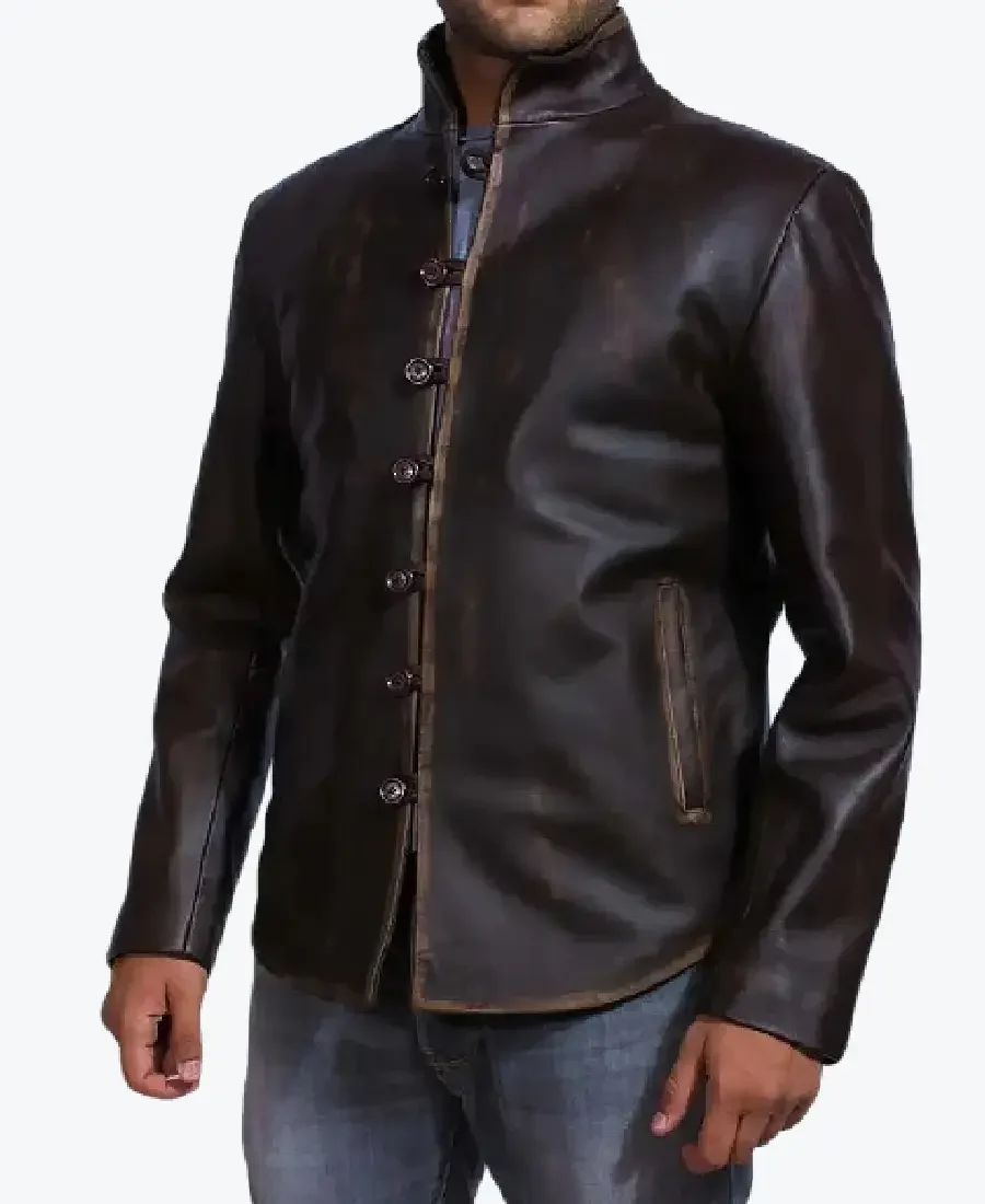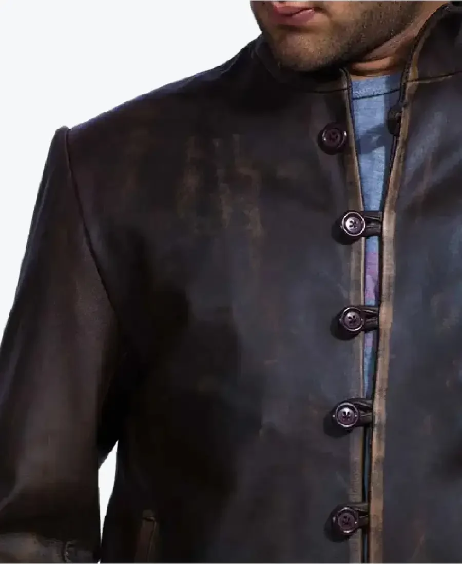 The architecture of this jacket is defined by its clean mid-length silhouette and an iconic “period-gentleman” aesthetic. It features a sharp stand-up officer collar providing a structured and powerful frame to the neckline that exudes a classic professional vibe with a contemporary urban twist. The front is anchored by a unique high-impact seven-button closure system featuring woven leather buttons and a contrasting raw-edge trim, maintaining a precision tailored-fit profile that emphasizes the clean vertical lines and expert ergonomic tailoring. To ensure a sleek and uninterrupted profile at the extremities, the full-length sleeves are finished with clean open hem cuffs, while the expert anatomical construction and curved hemline create a sophisticated architectural volume. Designed for the individual who demands maximum artistic flair within a polished frame, this Rare Jackets essential features a strategic pocket configuration—including two discreet side-entry welt pockets and hidden inner pockets—offering secure storage while reinforcing the jacket’s sleek, high-impact silhouette.