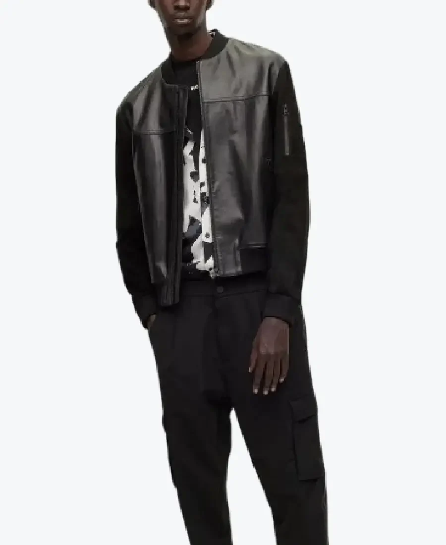The architecture of this jacket is defined by its clean waist-length silhouette and an iconic “tech-bomber” aesthetic. It features a sharp rib-knitted stand collar providing a structured and powerful frame to the neckline that exudes a classic athletic vibe with a contemporary urban twist. The front is anchored by a high-performance tonal zipper closure, maintaining a precision tailored-fit profile that highlights the unique horizontal chest-yoke paneling and mixed-material construction. To ensure superior heat retention and a custom look at the extremities, the full-length textile-hybrid sleeves and wide-waist hemline are finished with high-impact rib-knitted cuffs and a matching waistband, while the expert anatomical construction creates a sophisticated architectural volume. Designed for the individual who demands maximum artistic flair within a polished frame, this Rare Jackets essential features a strategic pocket configuration—including two discreet side-entry welt pockets and a hidden inner pocket—offering secure storage while reinforcing the jacket’s sleek, high-impact silhouette.