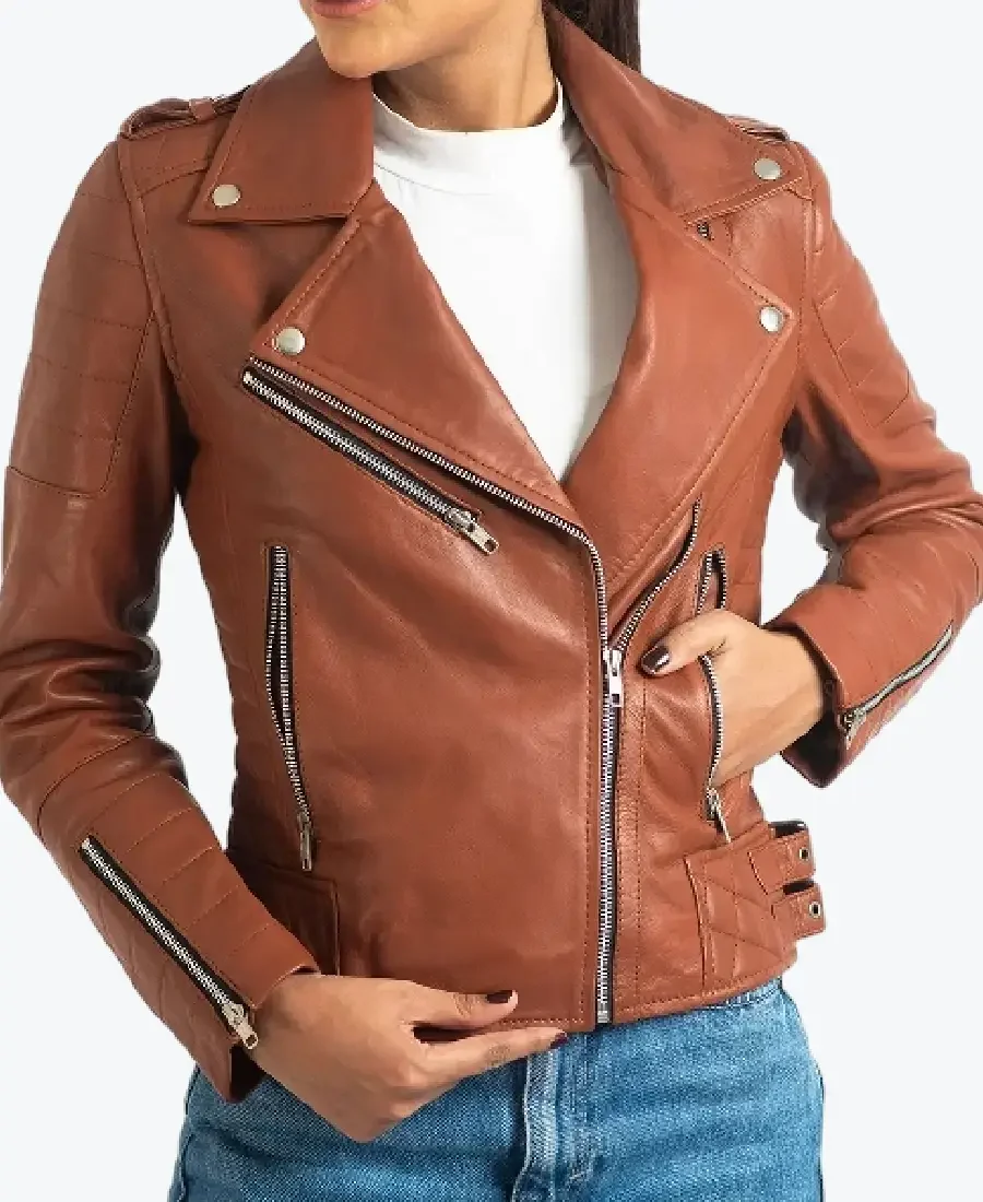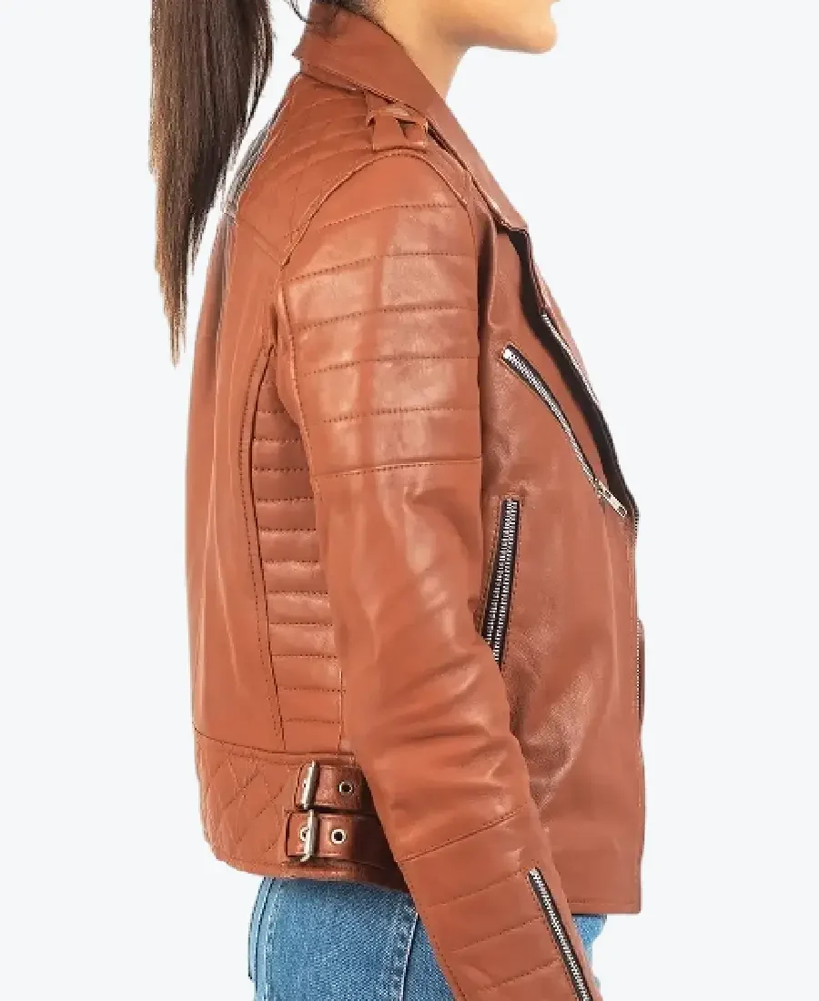Shop The Rare Jackets Elaine Women’s Brown Leather Biker Jacket