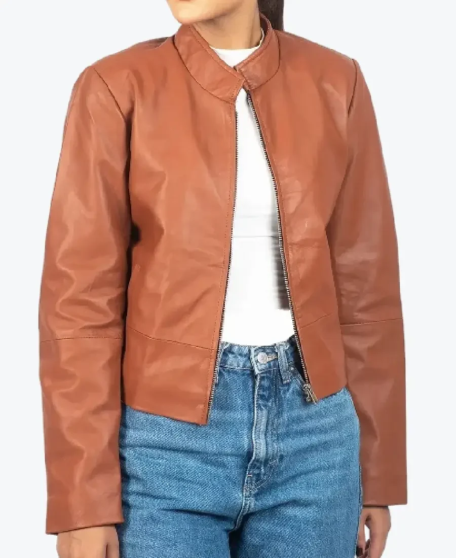 The Fannie Women’s Brown Leather Jacket by Rare Jackets is a masterclass in warm-minimalist design and precision luxury meticulously handcrafted from premium cowhide leather or high-grade faux leather. Drenched in a commanding and rich tan-brown cognac, this piece leverages a robust high-grade grain and natural wind-resistant properties to provide a formidable protective shell for transitional seasons. The leather is selected for its industrial-grade durability and a sophisticated butter-soft matte finish, ensuring the jacket maintains a sharp authoritative frame while projecting a raw, high-fashion energy. Inside, the garment is fully integrated with a silky viscose lining, providing a breathable and friction-free experience for maximum all-day comfort.