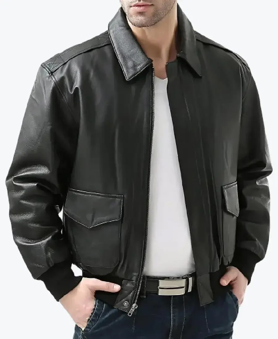 Flight Black A-2 Bomber Aviator Leather Jacket