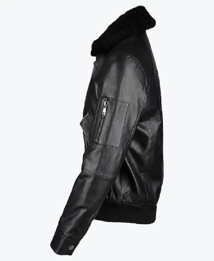 The architecture of this jacket is defined by its clean waist-length silhouette and an iconic “military-spec” aesthetic. It features a sharp turn-down collar integrated with high-impact black faux shearling fur, providing a structured and powerful frame to the neckline that exudes a classic professional vibe with a contemporary urban twist. The front is anchored by a high-performance tonal zipper closure, maintaining a precision tailored-fit profile that emphasizes the unique horizontal chest-yoke paneling and expert vertical ergonomic stitching. To ensure a custom look and a streamlined drape at the extremities, the full-length sleeves are finished with clean snap-tab cuffs, while the wide-waist rib-knitted hemline creates a sophisticated architectural volume. Designed for the individual who demands maximum organized utility within a polished frame, this Rare Jackets essential features a strategic five-pocket configuration—including two oversized external button-flap waist pockets, a technical utility zipper sleeve pocket, and two hidden inner pockets—offering secure storage while reinforcing the jacket’s sleek, high-impact silhouette.
