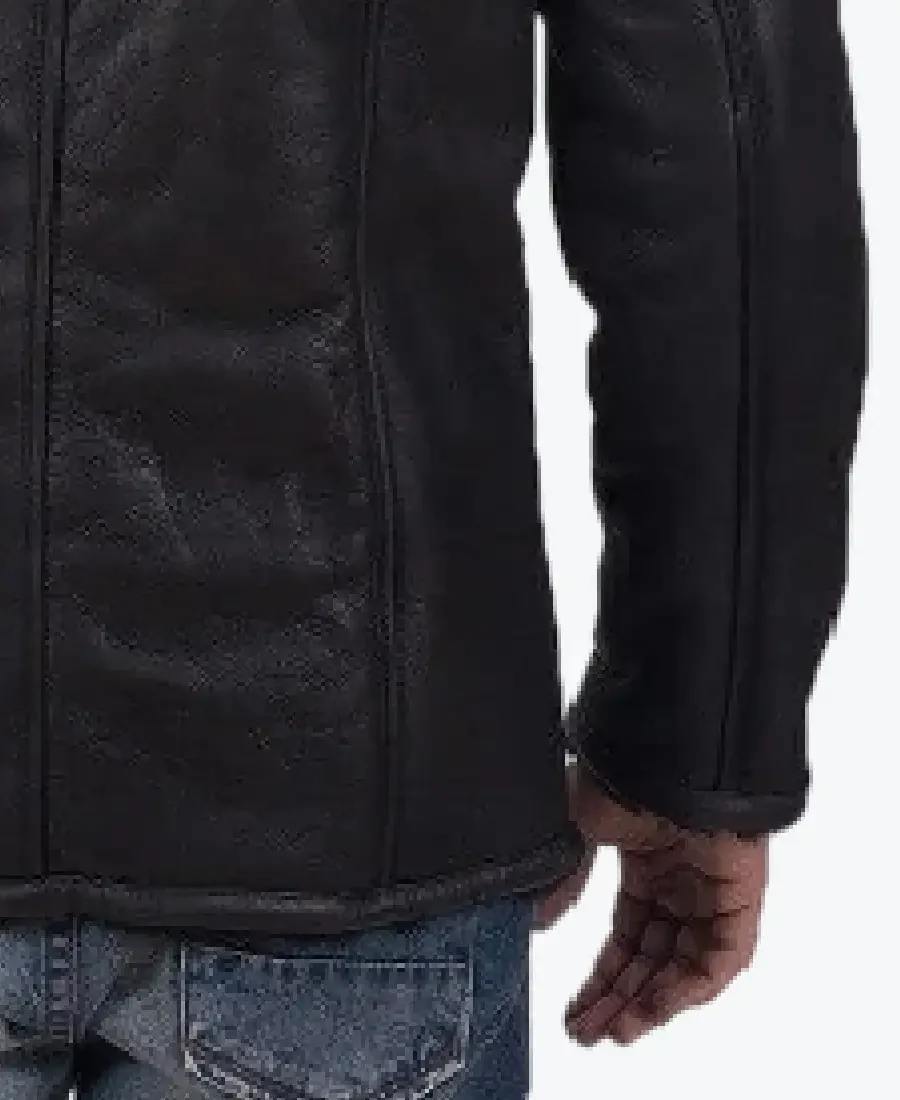 The architecture of this jacket is defined by its clean, vertical lines and sophisticated double-face structural detailing. It features a bold notch-lapel fur collar in a matching deep black, providing a textured and powerful frame to the neckline that exudes a classic car-coat-meets-modern-gentleman aesthetic. The front is anchored by a high-performance three-button closure, maintaining a precision regular fit profile that allows for professional layering over knits or suits. The design is further elevated by vertical paneled stitching that runs from the shoulders to the hem, enhancing the garment’s structural integrity and visual depth. To ensure a clean and streamlined finish at the wrists, the full-length sleeves are designed with open hem cuffs. Designed for the individual who demands maximum organized utility, this Rare Jackets essential features a strategic five-pocket configuration, including a horizontal chest zip pocket, two vertical side welt pockets, and two hidden inner pockets, offering secure storage while reinforcing the jacket’s powerful, high-impact silhouette.