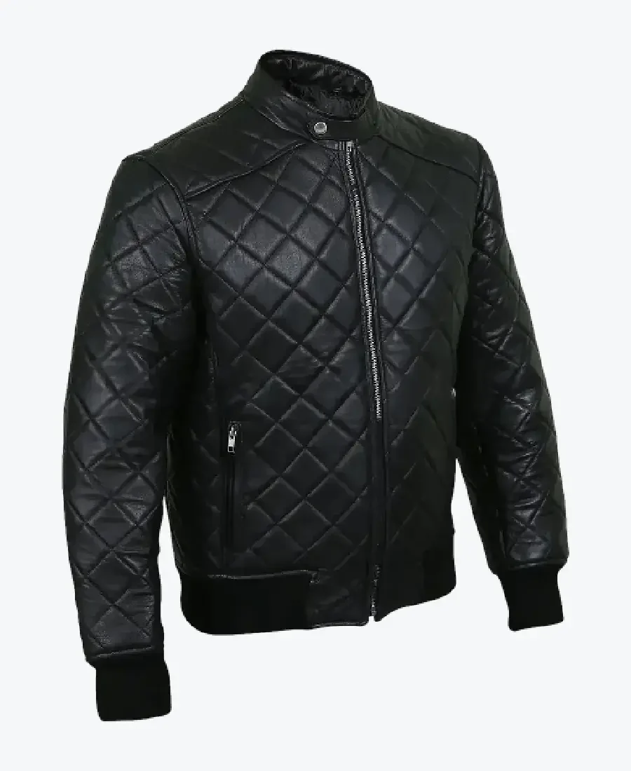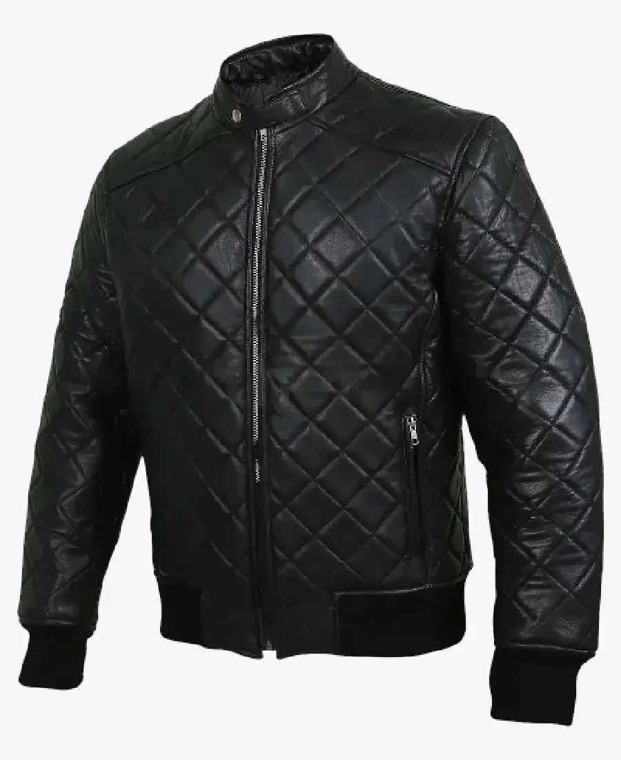The architecture of this jacket is defined by its clean waist-length silhouette and an iconic “diamond-moto” aesthetic. It features a sharp stand-up snap-tab collar providing a structured and powerful frame to the neckline that exudes a classic professional vibe with a contemporary urban twist. The front is anchored by a high-performance silver-tone zipper closure, maintaining a precision tailored-fit profile that highlights the intricate, all-over diamond quilted stitching. To ensure superior heat retention and a custom look at the extremities, the full-length sleeves and wide-waist hemline are finished with high-impact rib-knitted cuffs and a matching waistband, while the expert anatomical construction creates a sophisticated architectural volume. Designed for the individual who demands maximum artistic flair within a polished frame, this Rare Jackets essential features a strategic four-pocket configuration—including two external vertical zipper waist pockets and two hidden inner pockets—offering secure storage while reinforcing the jacket’s sleek, high-impact silhouette.