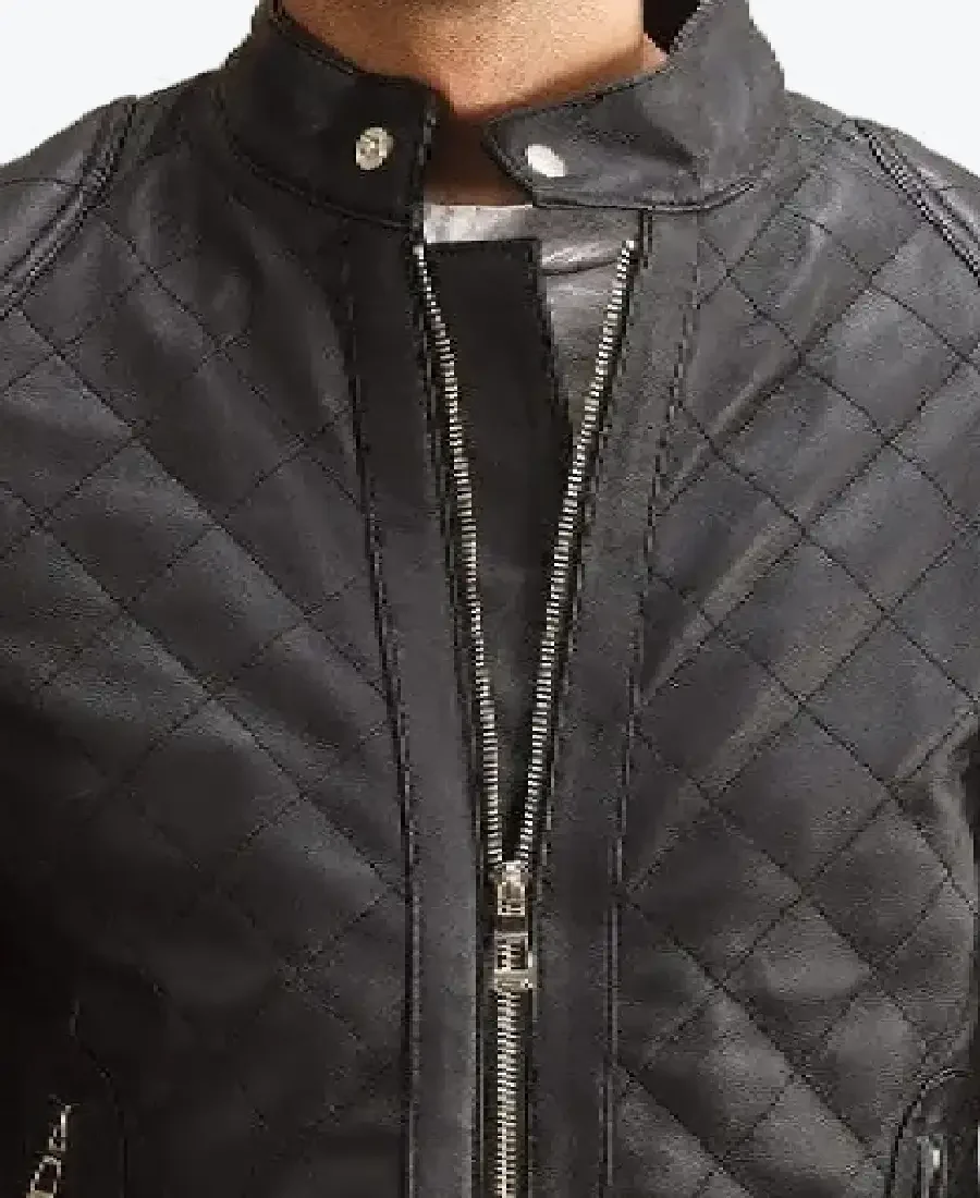 The architecture of this jacket is defined by its ultra-sleek aerodynamic silhouette and an iconic metropolitan “diamond-armor” aesthetic. It features a sharp erect band collar with a secure silver snap-button tab, providing a structured and powerful frame to the neckline that exudes a classic professional vibe with a contemporary urban twist. The front is anchored by a high-performance central silver zipper closure, maintaining a precision tailored fit profile that emphasizes the unique full-body diamond quilting and expert horizontal ribbed padding at the hem and cuffs. To ensure a custom look and tapered profile at the extremities, the full-length sleeves are finished with clean snap-button cuffs, while the reinforced anatomical construction creates a sophisticated architectural volume. Designed for the individual who demands maximum artistic flair within a polished frame, this Rare Jackets essential features a strategic pocket configuration including two discreet vertical side entry zipper pockets and two hidden inner pockets—offering secure storage while reinforcing the jacket’s sleek, high-impact silhouette.