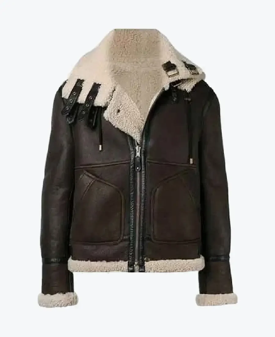 The architecture of this jacket is defined by its structured, heavy-duty silhouette and an iconic metropolitan “tactical-aviator” aesthetic. It features a sharp, oversized classic collar and a fully integrated high-performance sherpa hood, providing a powerful frame to the neckline and superior thermal protection that exudes a classic professional vibe with a contemporary urban twist. The front is anchored by a high-impact central silver zipper closure, maintaining a precision tailored fit profile that emphasizes the unique triple-buckled throat latches and expert anatomical seam detailing across the torso. To ensure a sleek and uninterrupted profile at the extremities, the full-length sleeves and hem are finished with clean open hem sherpa-trimmed cuffs, while the reinforced horizontal panelling creates a sophisticated architectural volume. Designed for the individual who demands maximum organized utility within a polished frame, this Rare Jackets essential features a strategic pocket configuration including two technical oversized slanted side entry pockets—offering secure storage while reinforcing the jacket’s sleek, high-impact silhouette.