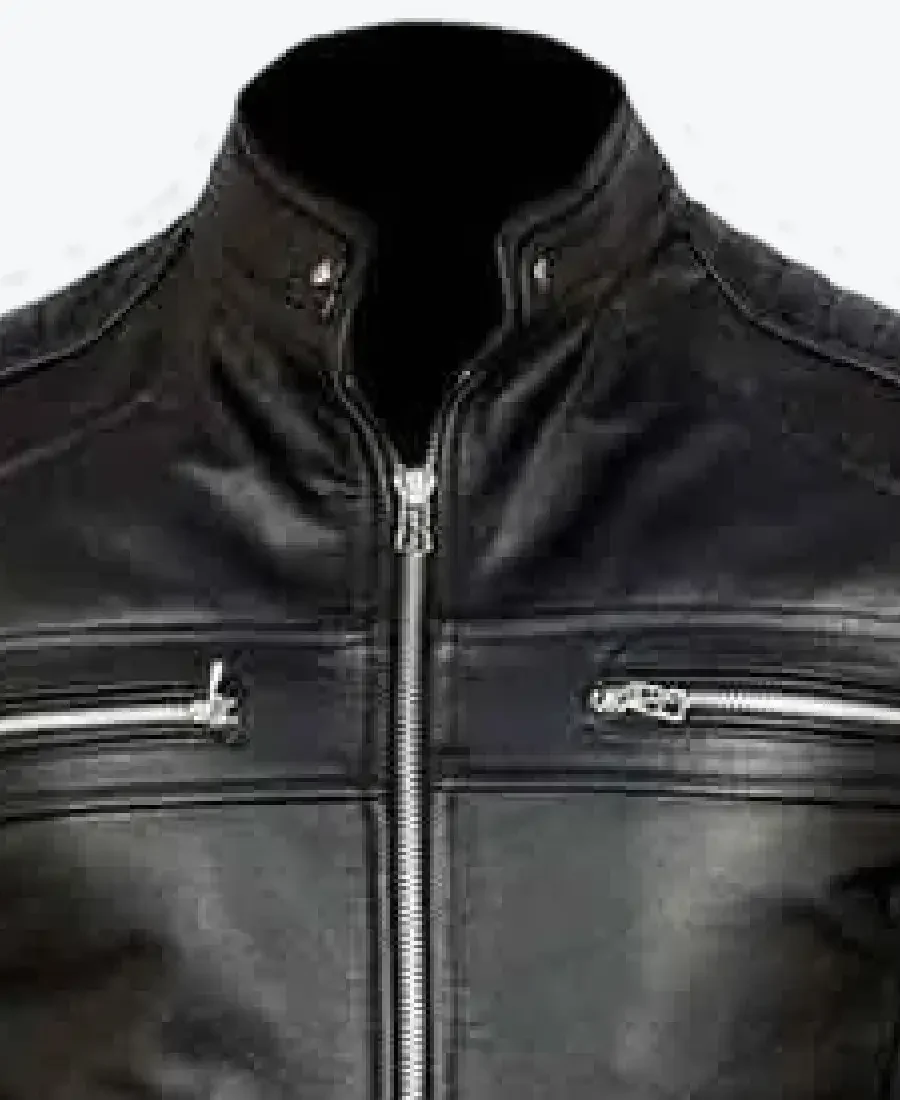 The James Men’s Black Biker Cafe Racer Jacket by Rare Jackets is a masterclass in high-definition urban architecture and precision luxury meticulously handcrafted from premium cowhide leather or high-grade faux leather. Drenched in a commanding and timeless charcoal obsidian, this piece leverages a robust high-grade grain and natural wind-resistant properties to provide a formidable protective shell for the modern landscape. The leather is selected for its industrial-grade durability and a sophisticated liquid-sheen buttery finish, ensuring the jacket maintains a sharp authoritative frame while projecting a raw, high-fashion energy. Inside, the garment is fully integrated with a silky viscose lining, providing a breathable and friction-free experience for maximum all-day comfort.