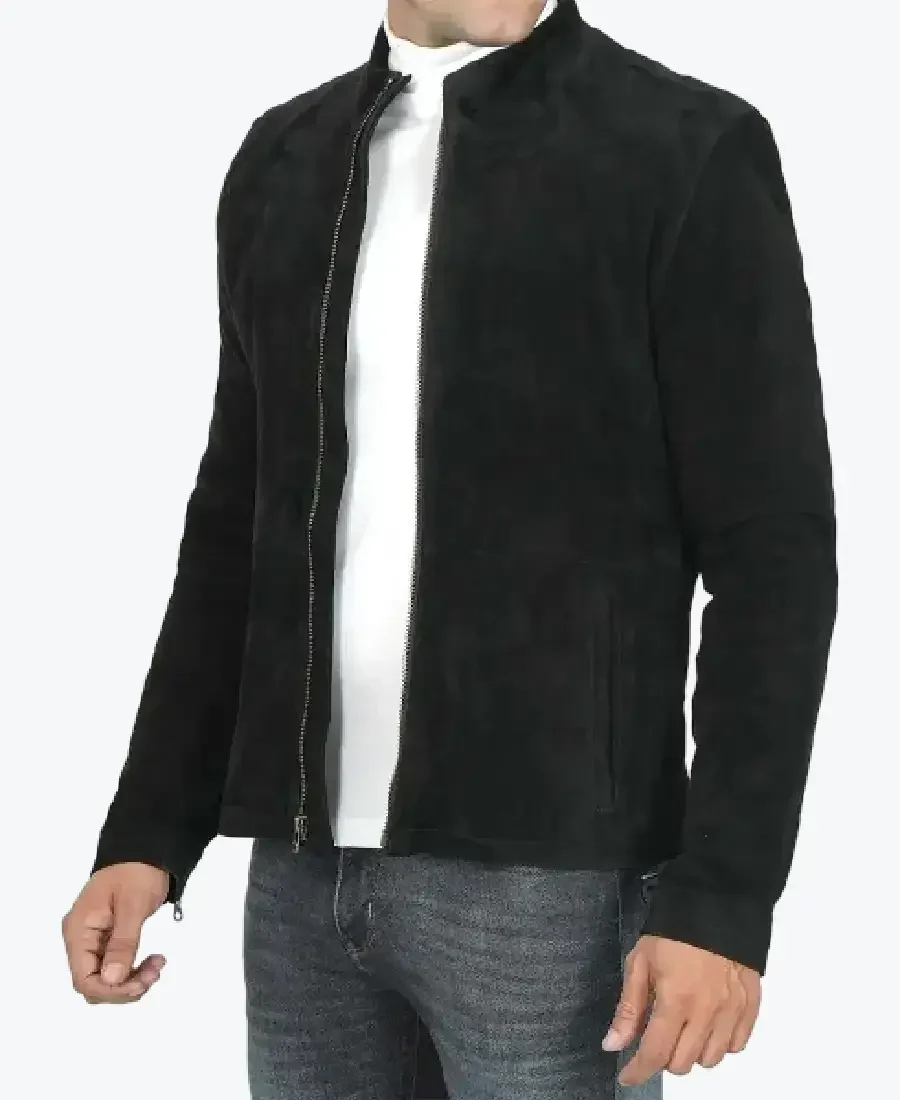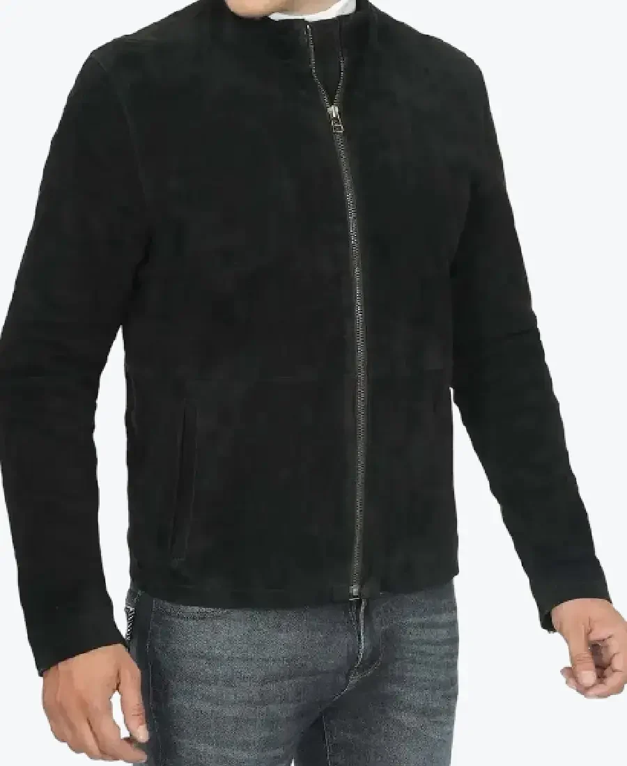 Jasper Men Black Cafe Racer Suede Jacket