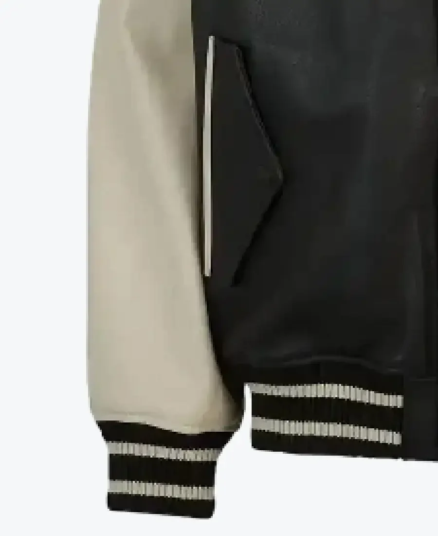 The Jaxon Men’s Black and Off-White Leather Varsity Jacket by Rare Jackets is a masterclass in high contrast athletic design and precision luxury meticulously handcrafted from premium cowhide leather or high grade faux leather. Featuring a commanding obsidian black torso paired with clinical arctic off white sleeves, this piece leverages a robust high grade grain and natural wind resistant properties to provide a formidable protective shell for the modern landscape. The leather is selected for its industrial grade durability and a sophisticated semi matte buttery finish, ensuring the jacket maintains a sharp authoritative frame while projecting a raw, high fashion energy. Inside, the garment is fully integrated with a silky viscose lining, providing a breathable and friction free experience for maximum all day comfort.
