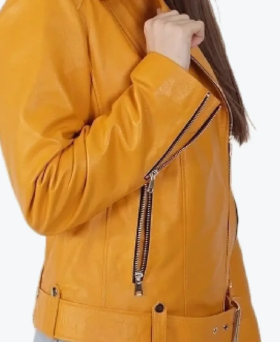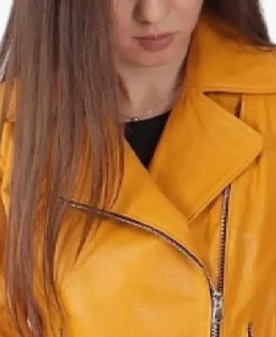 Shop The Rare Jackets Jenna Yellow Biker Leather Jacket