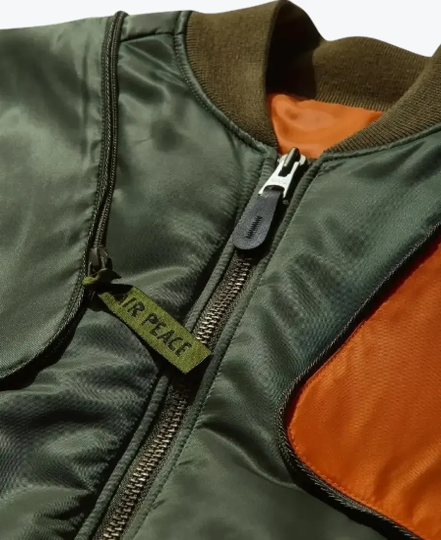 The design includes a classic ribbed collar and matching ribbed cuffs, which help to retain body heat and provide a snug, secure fit at the neck and wrists. An industrial-grade zipper closure ensures a reliable seal against the elements while maintaining the iconic MA-1 profile. This jacket is equipped with two side pockets for functional storage and a convenient place to warm your hands during cooler weather. The striking green and orange colorway provides a high-contrast, reversible-inspired aesthetic that serves as a standout centerpiece for any outfit. Full-length sleeves allow for a traditional fit and natural movement during your daily activities. This garment stands as a piece of premium craftsmanship for those seeking a unique and functional addition to their outerwear collection.
