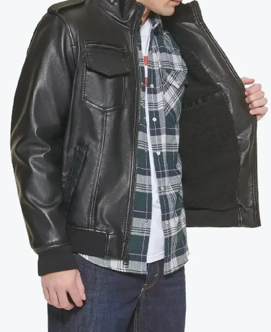 The Kin Men’s Black Bomber Leather Jacket by Rare Jackets is a masterclass in tactical-urban design and precision luxury meticulously handcrafted from premium cowhide leather or high-grade faux leather. Drenched in a commanding and timeless obsidian black, this piece leverages a robust high-grade grain and natural wind-resistant properties to provide a formidable protective shell for the modern urban landscape. The leather is selected for its industrial-grade durability and a sophisticated semi-matte textured finish, ensuring the jacket maintains a sharp authoritative frame while projecting a raw, high-fashion energy. Inside, the garment is fully integrated with a plush faux shearling lining, providing an elite thermal barrier and unparalleled comfort for all-day wear.