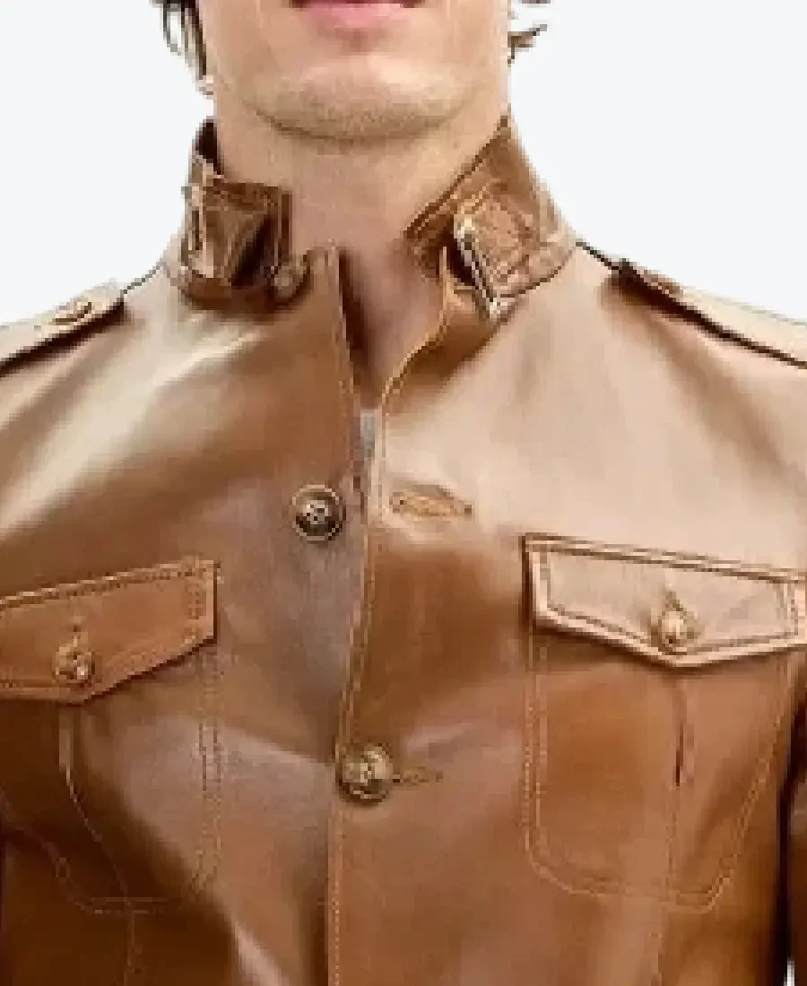 The architecture of this jacket is defined by its clean mid-length silhouette and an iconic “safari-explorer” aesthetic. It features a sharp stand-up collar with an integrated leather throat-latch belt, providing a structured and powerful frame to the neckline that exudes a classic professional vibe with a contemporary urban twist. The front is anchored by a high-impact four-button closure system, maintaining a precision tailored-fit profile that emphasizes the military-inspired shoulder epaulettes and expert vertical seam construction. To ensure a sleek and uninterrupted profile at the extremities, the full-length sleeves are finished with clean-cut snap-button cuffs, while the curved hemline and expert anatomical construction create a sophisticated architectural volume. Designed for the individual who demands maximum organized utility within a polished frame, this Rare Jackets essential features a strategic four-pocket configuration—including two chest patch pockets with secure button flaps and two oversized lower cargo pockets—offering secure storage while reinforcing the jacket’s sleek, high-impact silhouette.