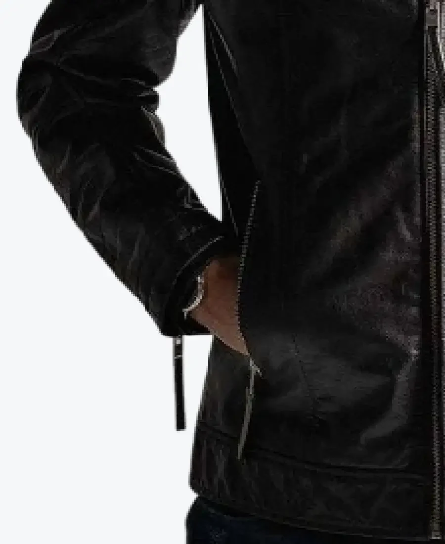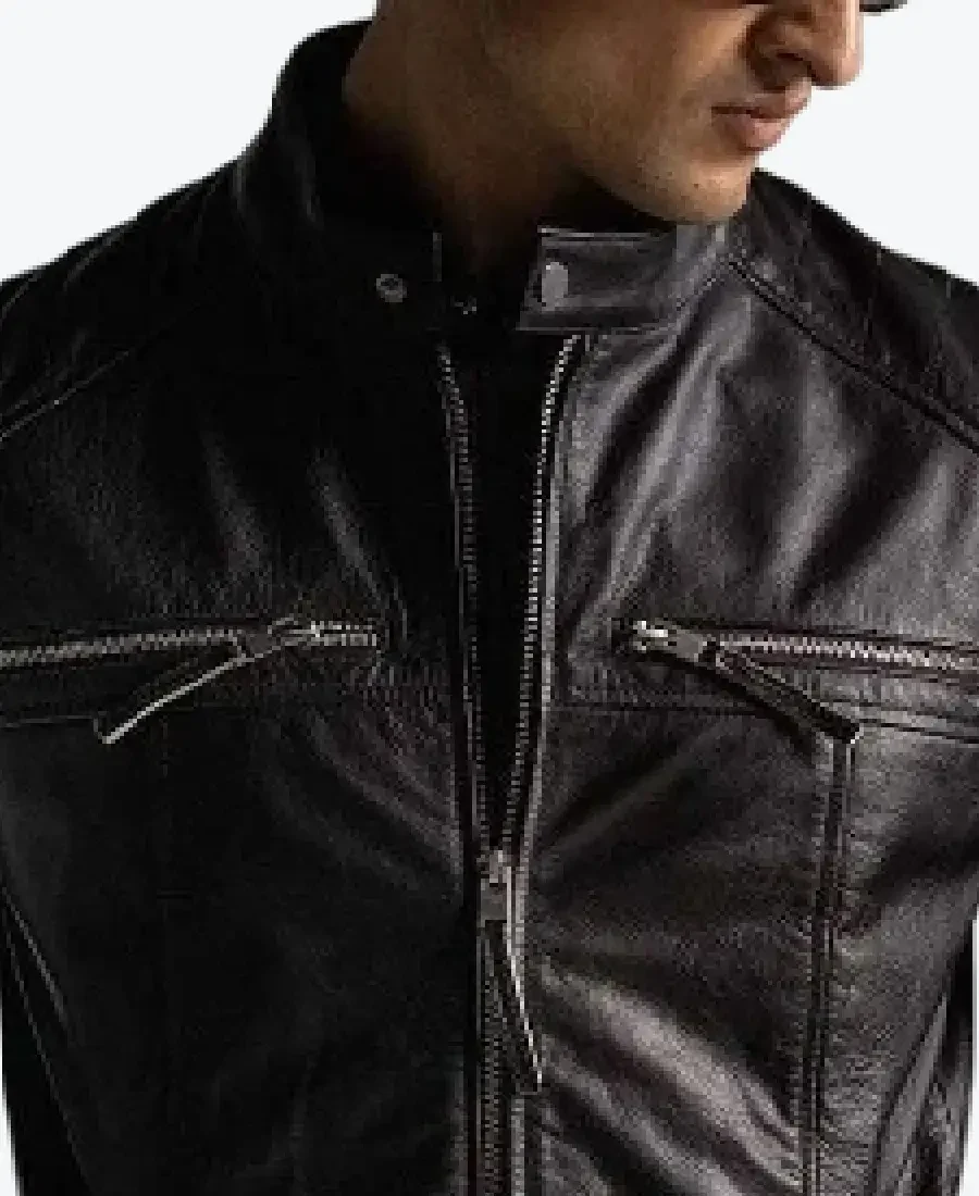 The architecture of this jacket is defined by its ultra-sleek aerodynamic silhouette and an iconic metropolitan “speedway-elite” aesthetic. It features a sharp erect collar with secure snap-button hardware, providing a structured and powerful frame to the neckline that exudes a classic professional vibe with a contemporary urban twist. The front is anchored by a high-performance central silver zipper closure, maintaining a precision tailored fit profile that emphasizes the unique horizontal chest zipper yokes and expert anatomical seam construction. To ensure a custom look and tapered profile at the extremities, the full-length sleeves are finished with high-impact silver zipper cuffs, while the reinforced horizontal panelling at the hem creates a sophisticated architectural volume. Designed for the individual who demands maximum organized utility within a polished frame, this Rare Jackets essential features a strategic six-pocket configuration including two technical horizontal zipper chest pockets, two discreet vertical side entry zipper pockets, and two hidden inner pockets—offering secure storage while reinforcing the jacket’s sleek, high-impact silhouette.