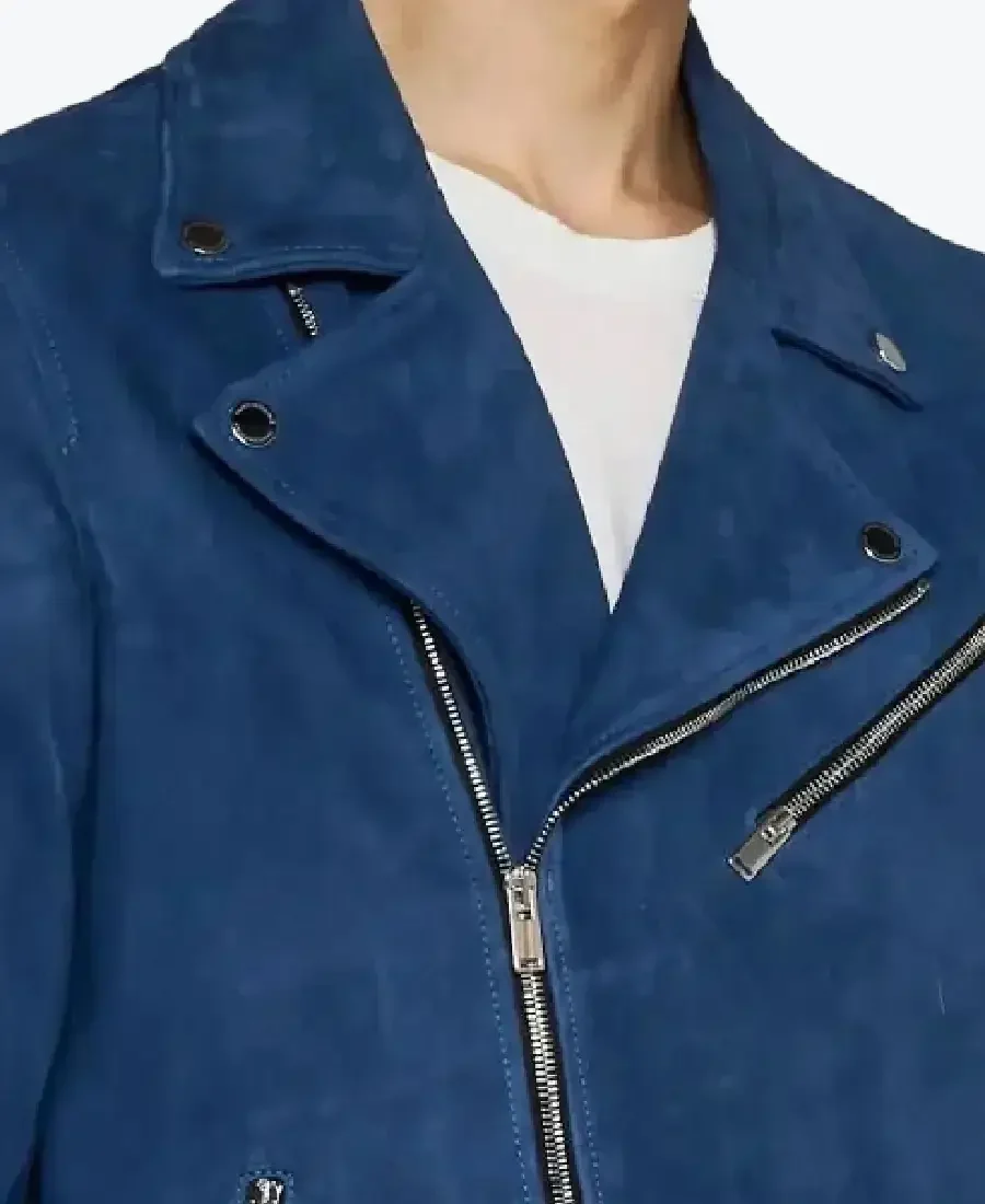 Shop The Rare Jackets Men’s Blue Suede Leather Biker Jacket