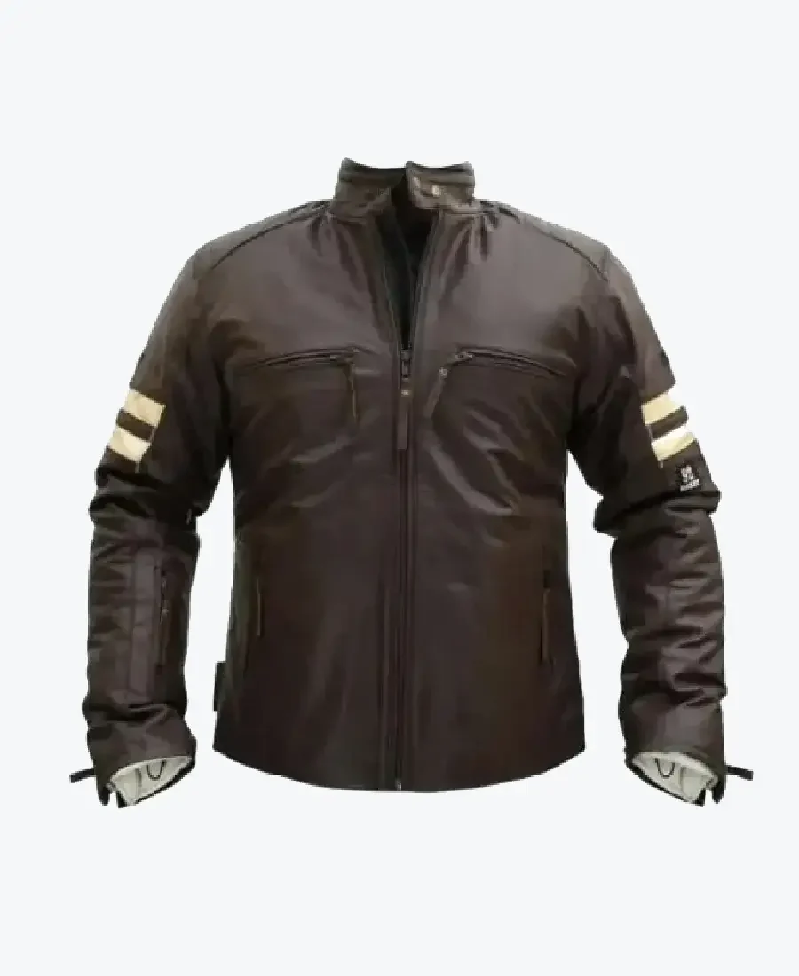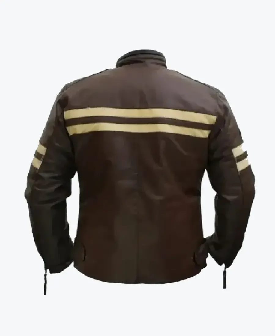 Men Distressed Cruiser Stripes Leather Jacket