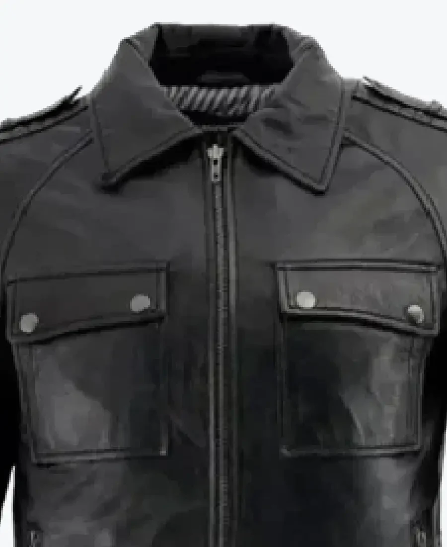 The architecture of this jacket is defined by its clean waist length silhouette and an iconic metropolitan field jacket aesthetic. It features a sharp turn down shirt style leather collar providing a structured and powerful frame to the neckline that exudes a classic professional vibe with a contemporary urban twist. The front is anchored by a high performance central silver zipper closure, maintaining a precision tailored fit profile that emphasizes the technical horizontal chest yoke and expert epaulet shoulder straps. To ensure a custom look and tapered profile at the extremities, the full length sleeves are finished with high impact zipper cuffs and horizontal ribbed padding on the forearms, while the reinforced straight cut hemline creates a sophisticated architectural volume. Designed for the individual who demands maximum organized utility within a polished frame, this Rare Jackets essential features a strategic four pocket configuration including two expansive snap flap chest pockets and two discreet vertical side entry zipper pockets offering secure storage while reinforcing the jacket’s sleek, high impact silhouette.
