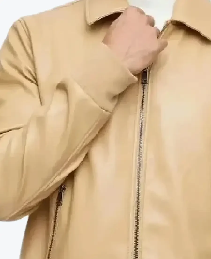 Men’s Beige Bomber Leather Jacket