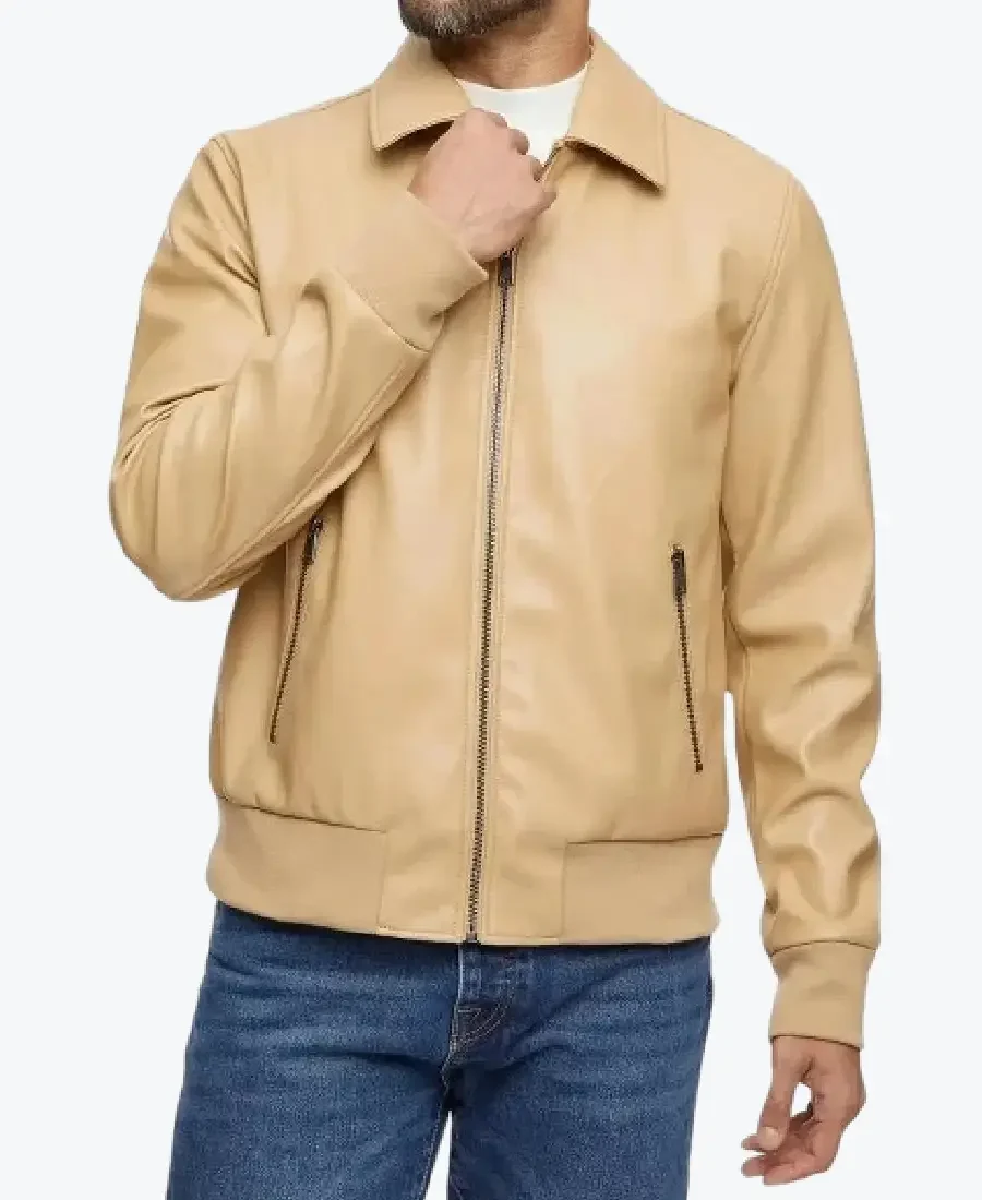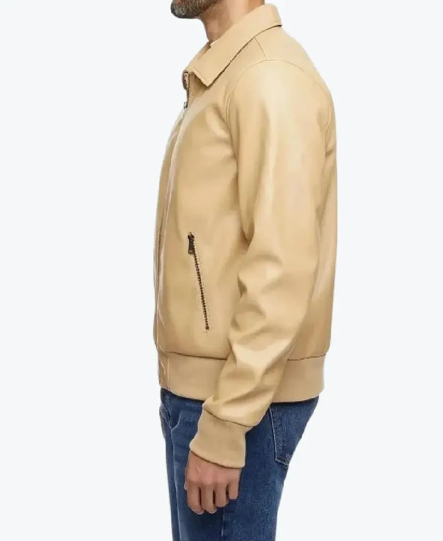 Men’s Beige Leather Bomber Jacket